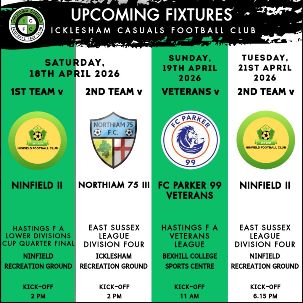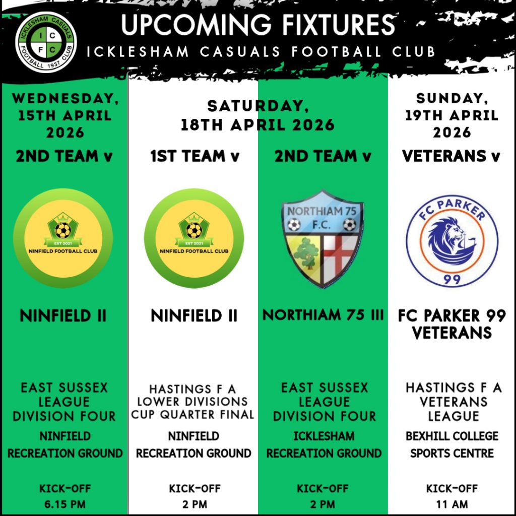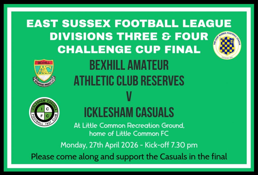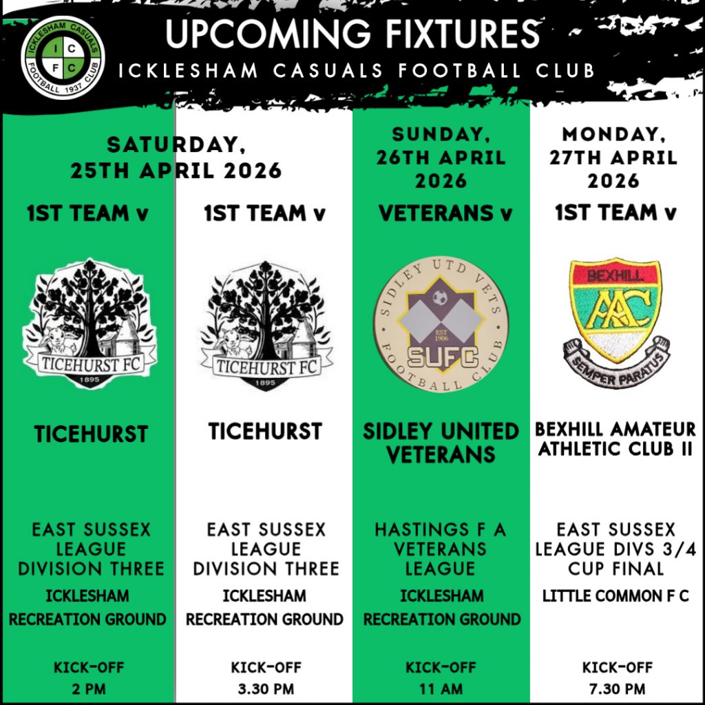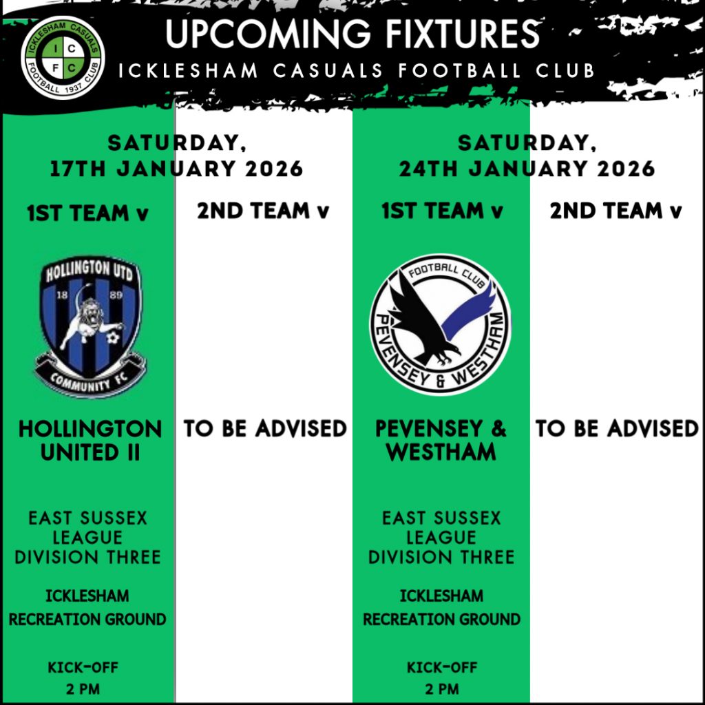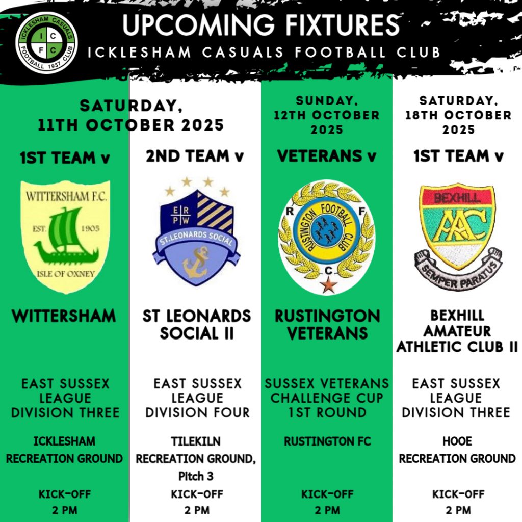 Icklesham Casuals Football Club is a friendly village club situated between Hastings and Rye and has a history of which it can be proud. For the 2025-26 season, the Club will be running two adults teams in the East Sussex Football League and a veterans side competing in the Hastings F A Veterans League.
