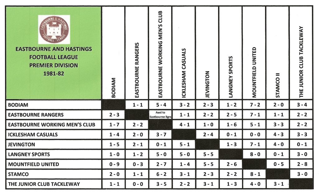 | 14/11/1981 | Bodiam | Home | League | 1 – 4 | John Crisford |