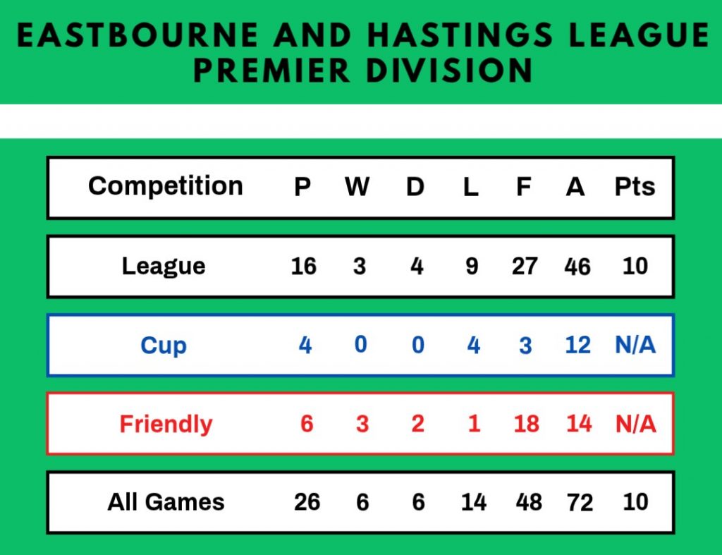 | 23/1/1982 | Eastbourne Rangers | Away | Eastbourne and Hastings League Premier Division Cup 1st Round | 0 – 4 | |