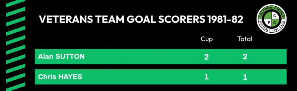 | Civil Service Veterans | Home | Hastings F A Veterans Cup 1st Round | 2 – 1 | Alan Sutton 2 | |