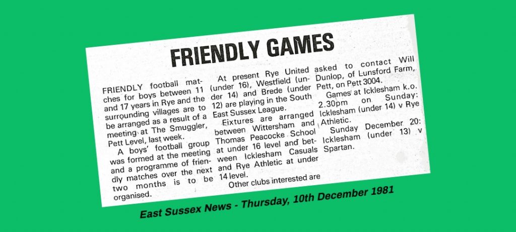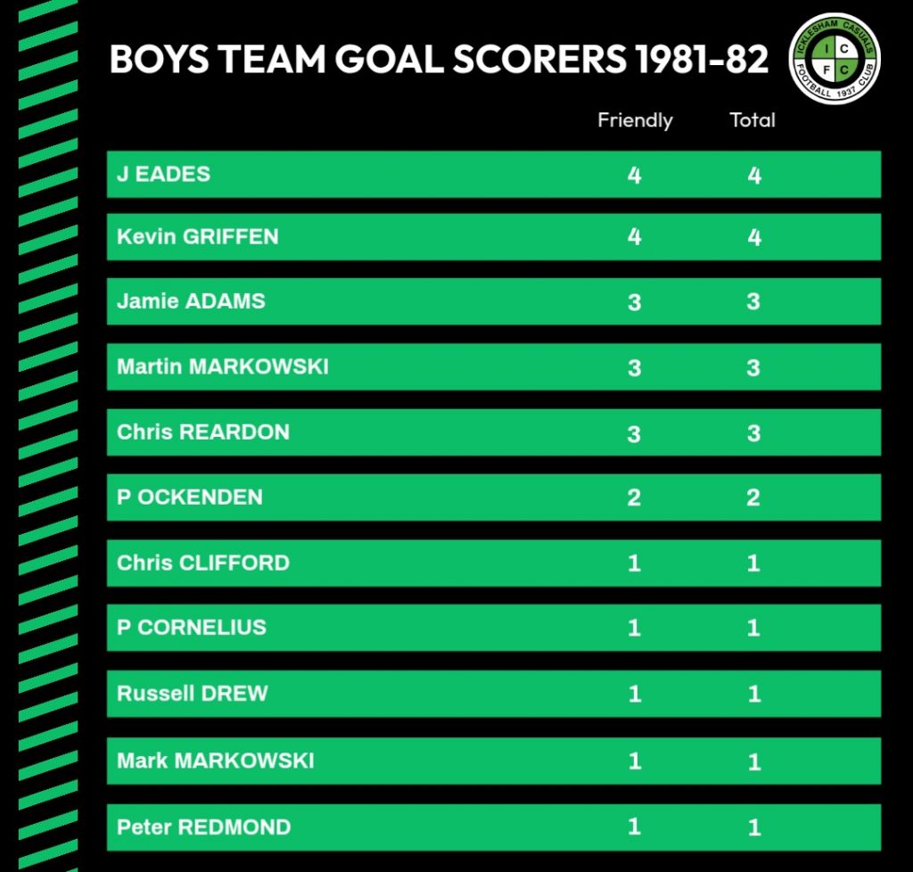 | 13/12/1981 | Rye Athletic | Home | Friendly (Under 14) | 1 – 7 | Martin Markowski |