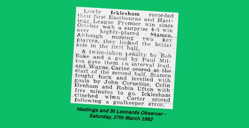 | 24/4/1982 | Eastbourne Working Men’s Club | Home | League | 3 – 7 | Bob Baker 2, Jimmy Fuggle |