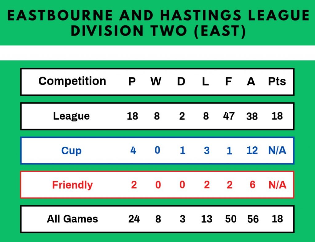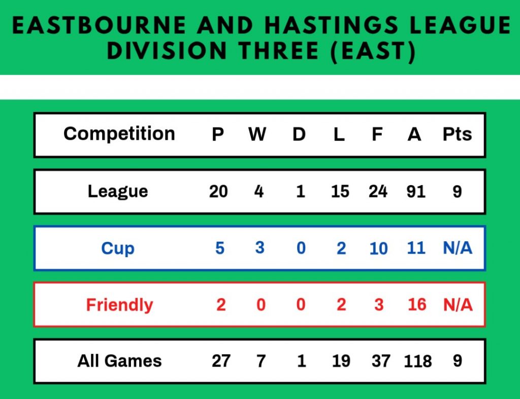 | 20/4/1982 | Ore Centre | Away | Eastbourne and Hastings League Division Two Cup Semi-Final | 0 – 6 | |