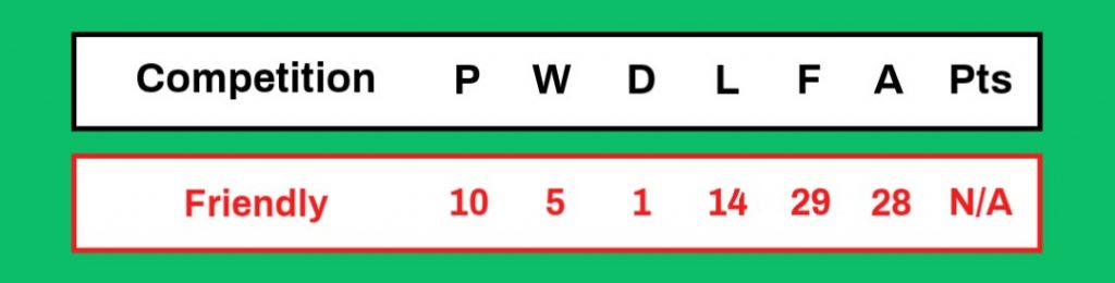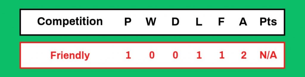 | 12/4/1982 | G W R | Home | Friendly | 1 – 2 |