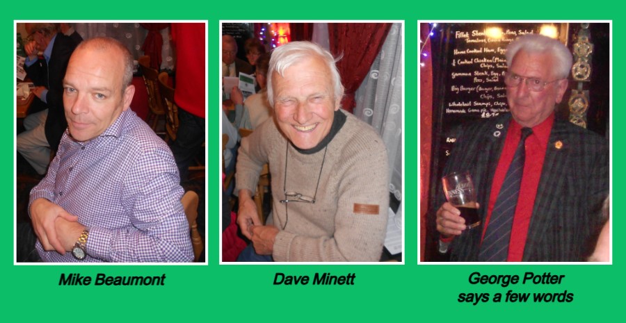The sit-down meal was attended by seven members of the winning side, officers, past and present members of the Club, Eddie Potter, deputy chairman of the Sussex County Football Association and chairman of the East Sussex Football League, along with their guests. The players from the winning team in attendance were:- Chris Ades, David Ades, Jack Brown, Bryan Butler, Bill Burt, Mike Hills and captain George Potter. Norman Hickman, who played in three of the rounds leading up to the final including scoring the winning goal from 25 yards in the 3-2 victory over Drive United in the 6th round, was also present. Of the four remaining players, Jim Brunger and George Noakes have sadly passed away, Colin Relf was on holiday and Derek Perkins could not be tracked down.