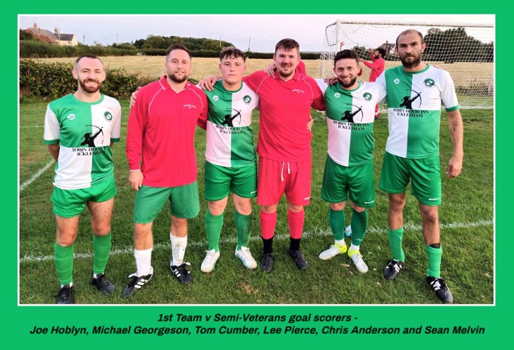 Tom Cumber (2), Chris Anderson, Sean Melvin and Joe Hoblyn were the 1st team scorers with Michael Georgeson and Lee Pierce replying for the Semi-Vets.