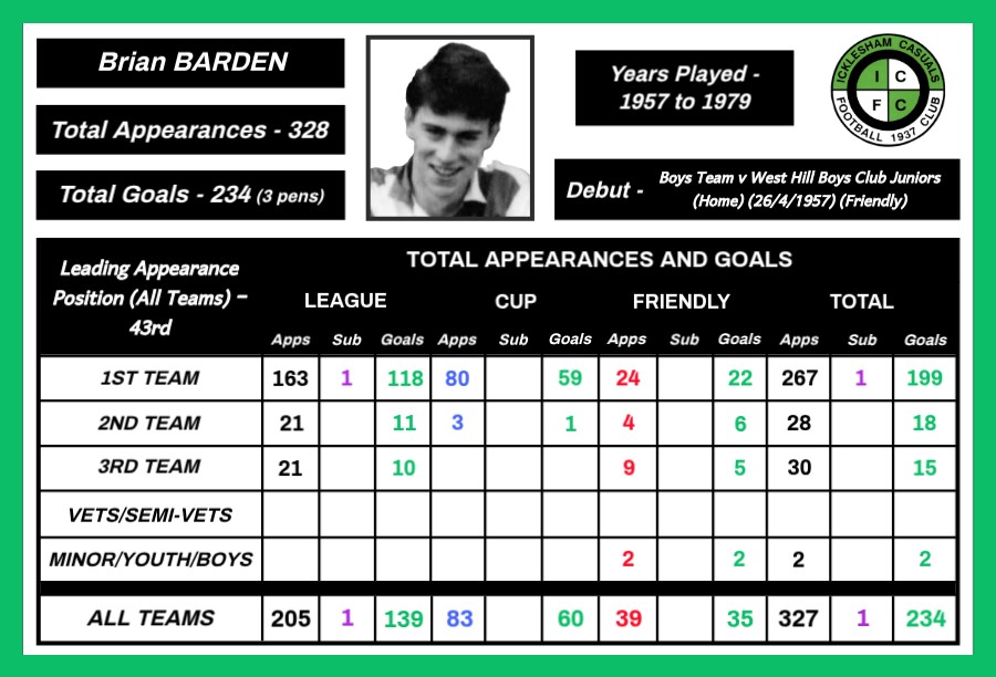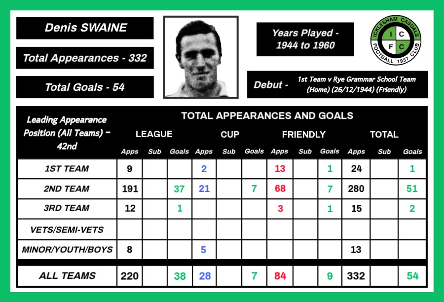 All players making over 100 appearances for the Club are shown. Full playing records for players making 200 or more appearances can be viewed by clicking on the player while records for players who have appeared in 100 to 199 games are being added.