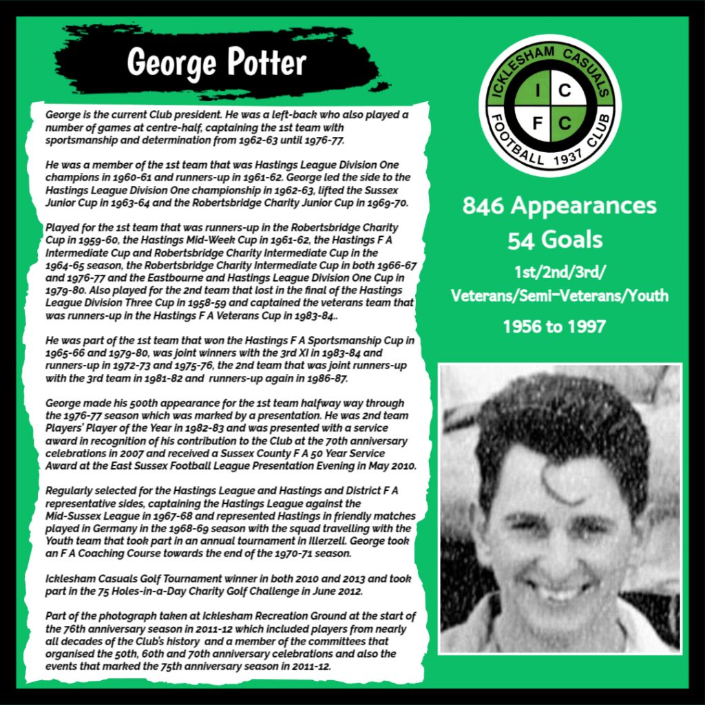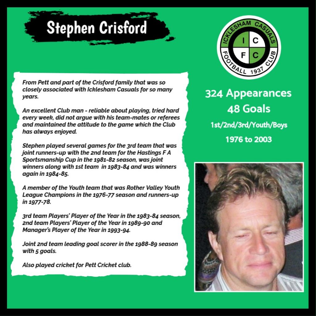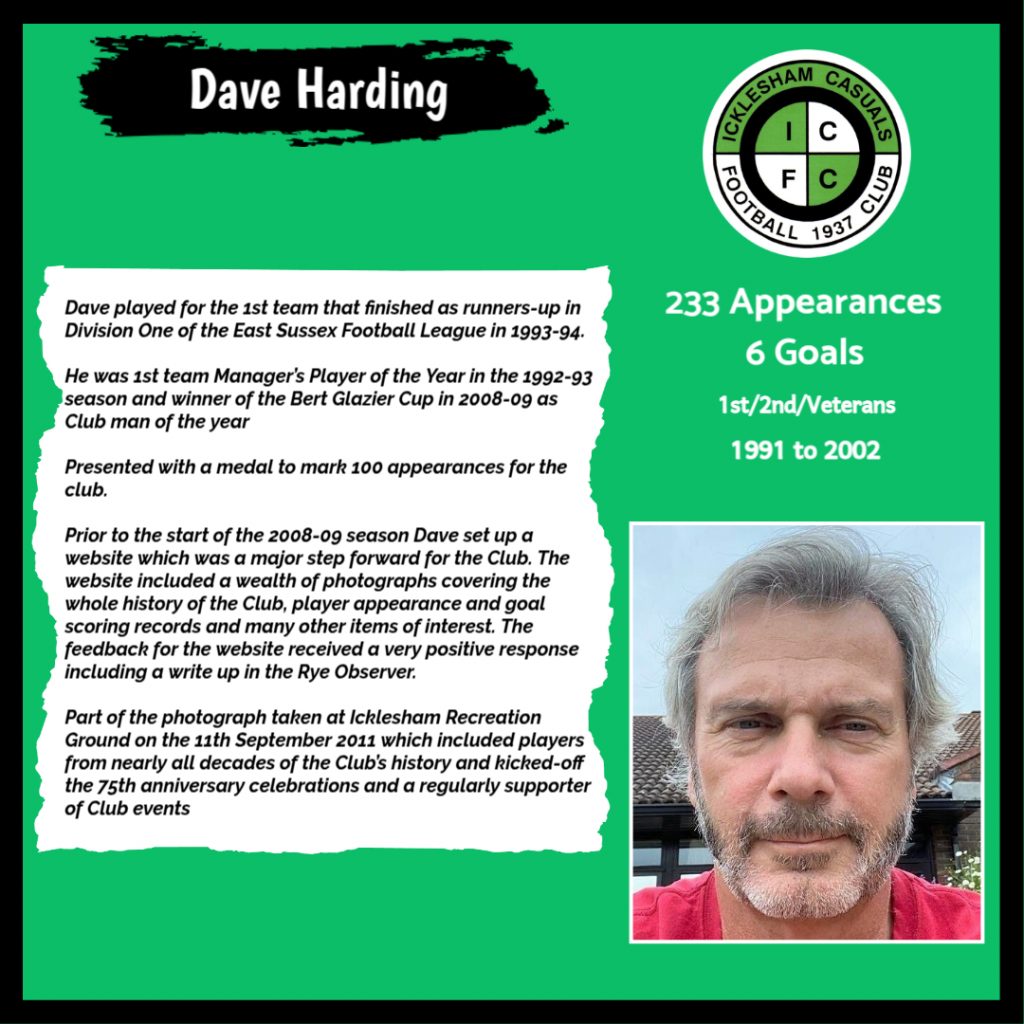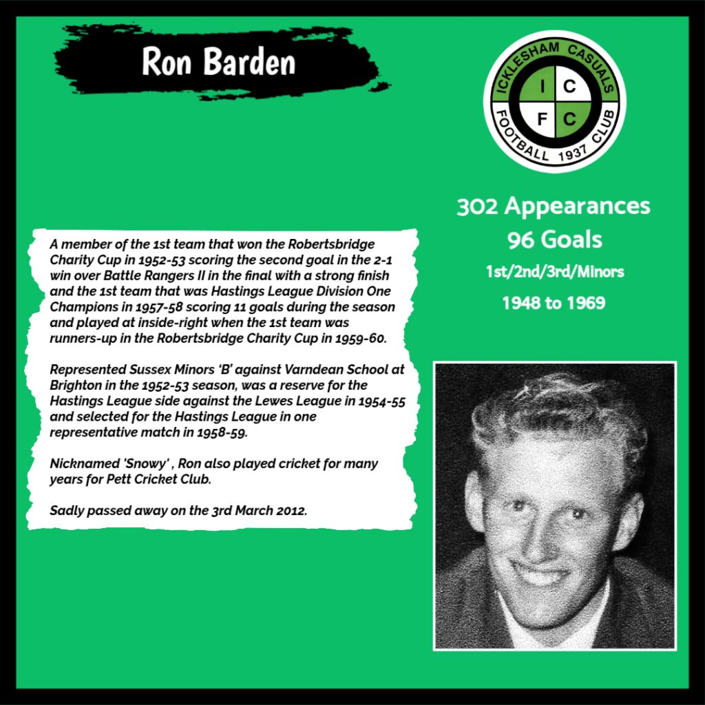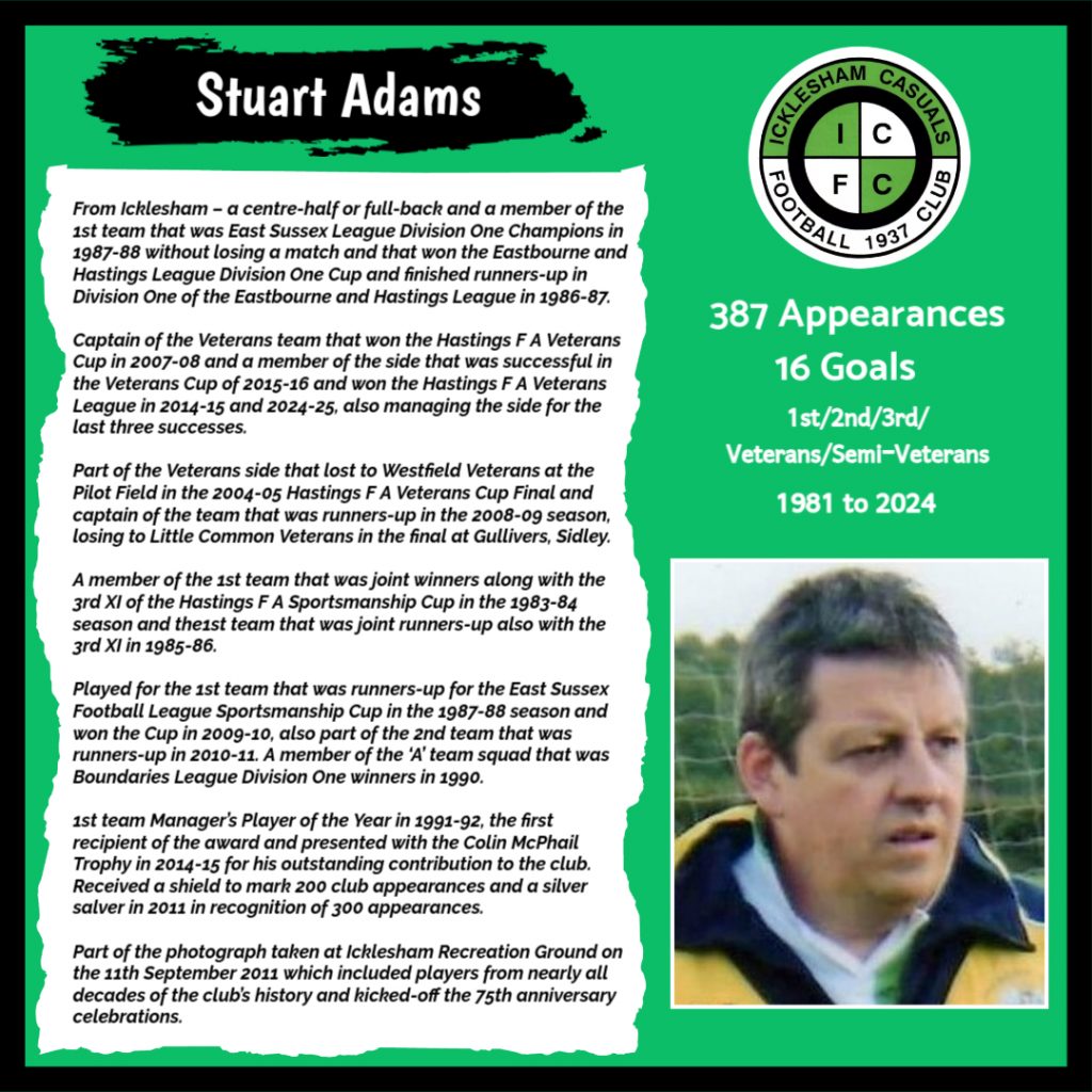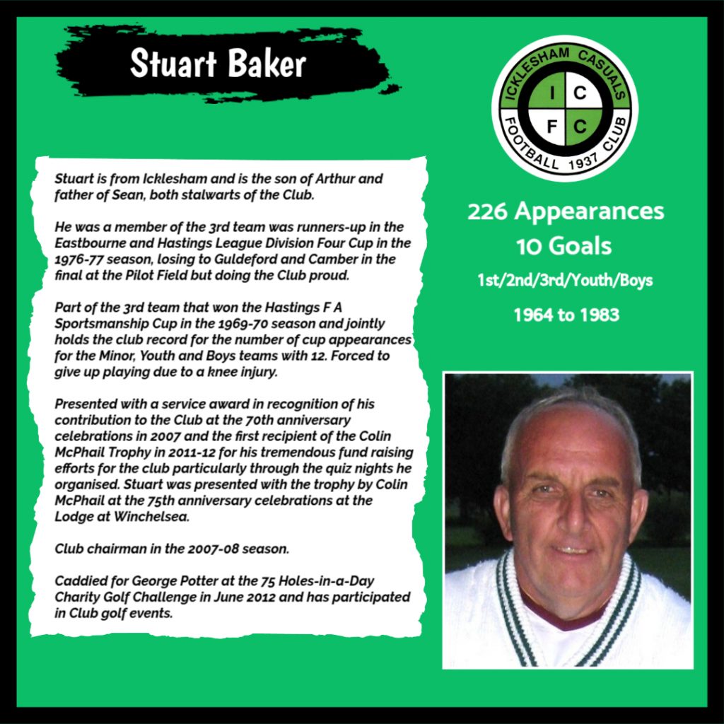 All have made a significant contribution to Icklesham Casuals Football Club both on and off the field, are among the leading appearance makers or goal scorers, one of the excellent captains of the various teams or were part of the Sussex Junior Cup winning side – the greatest achievement in the Club’s history to date.