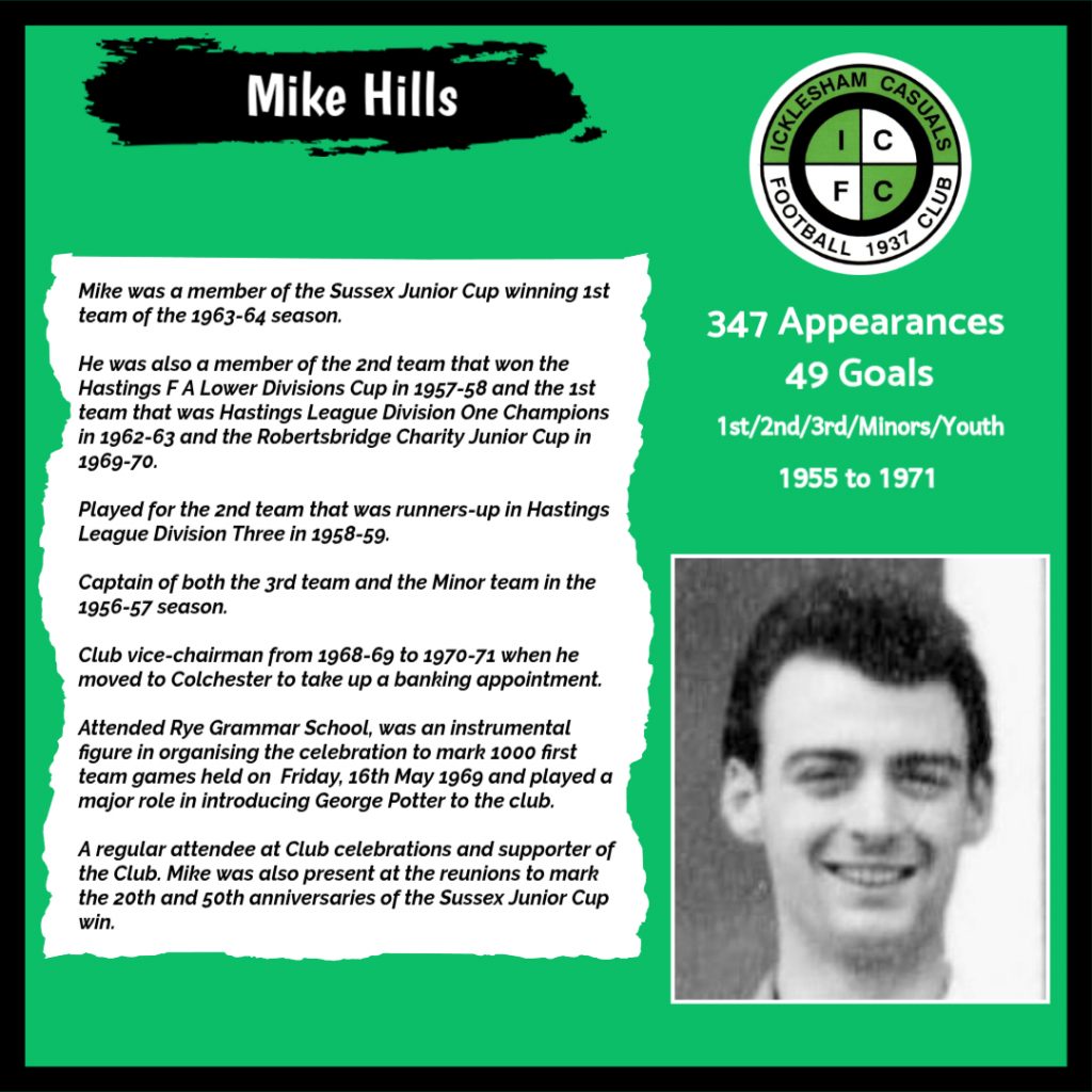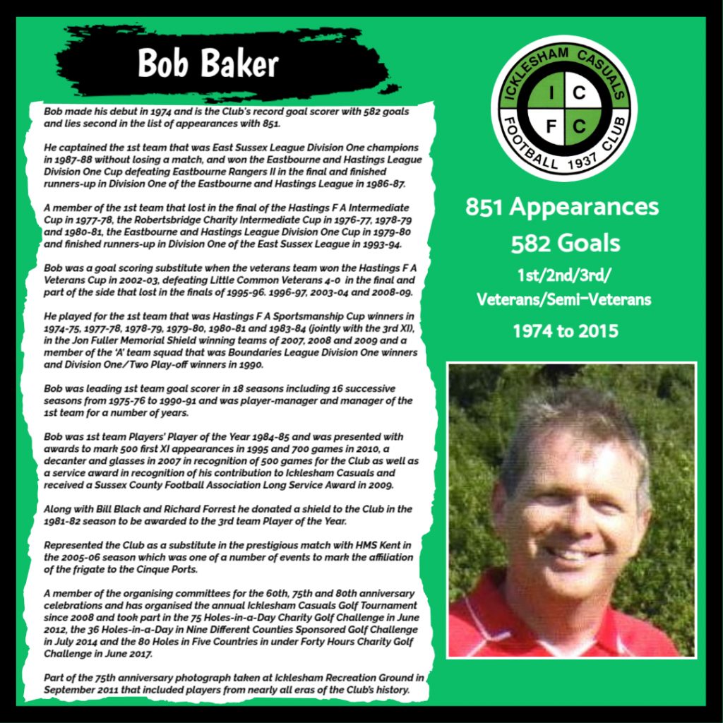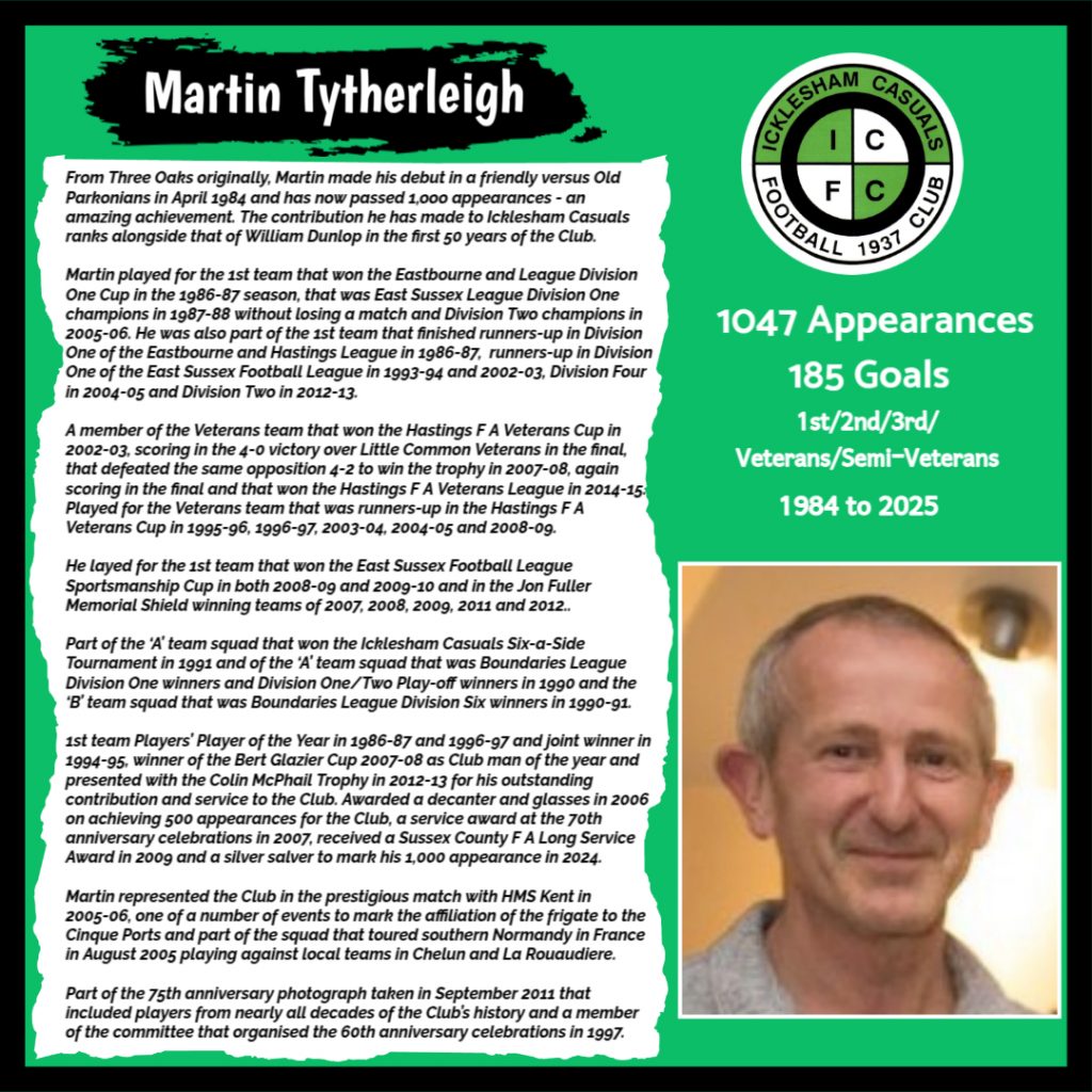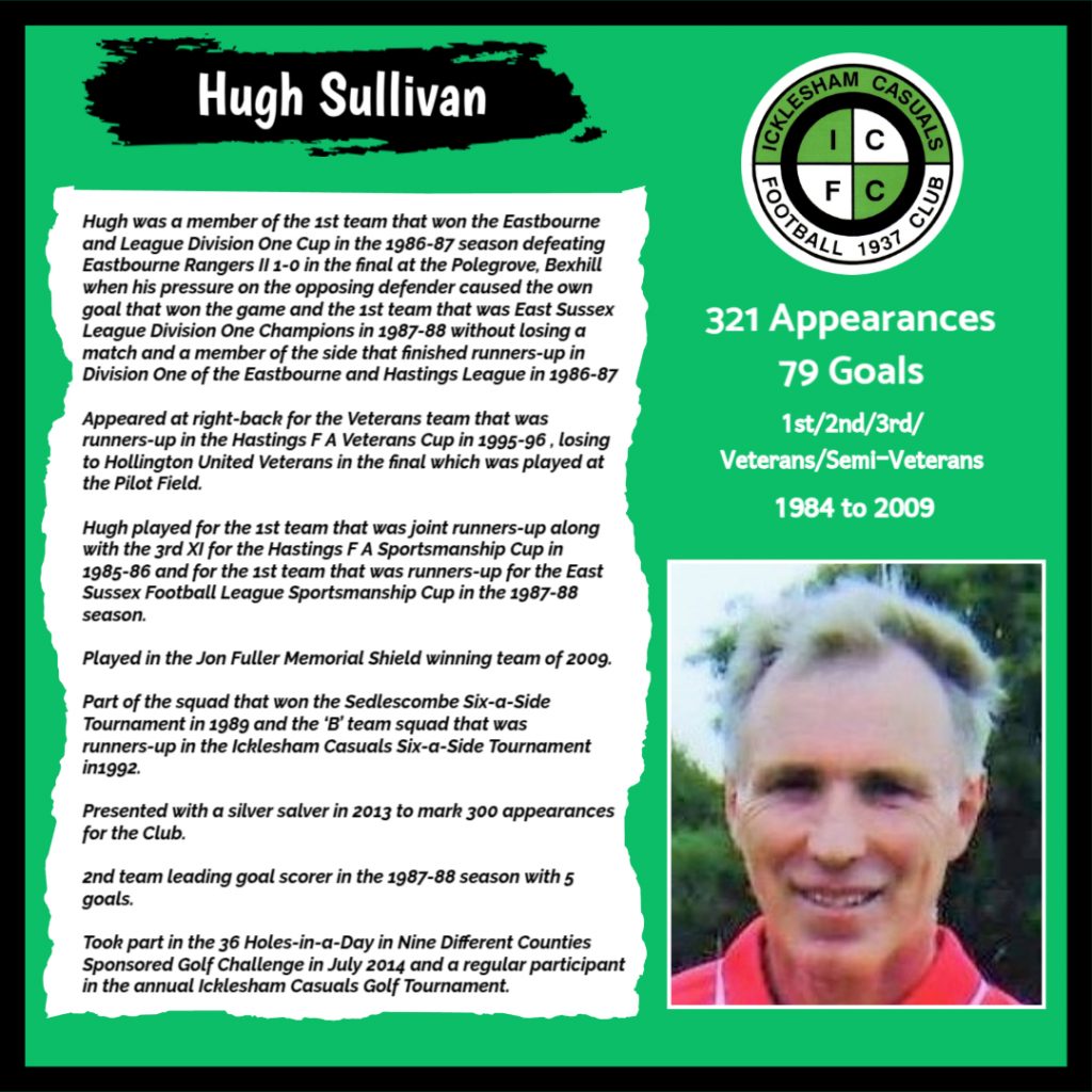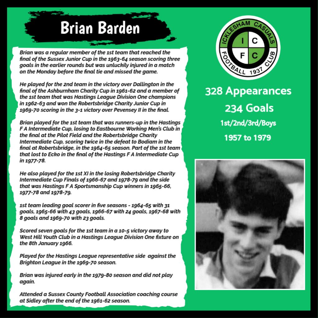 All have made a significant contribution to Icklesham Casuals Football Club both on and off the field, are among the leading appearance makers or goal scorers, one of the excellent captains of the various teams or were part of the Sussex Junior Cup winning side – the greatest achievement in the Club’s history to date.