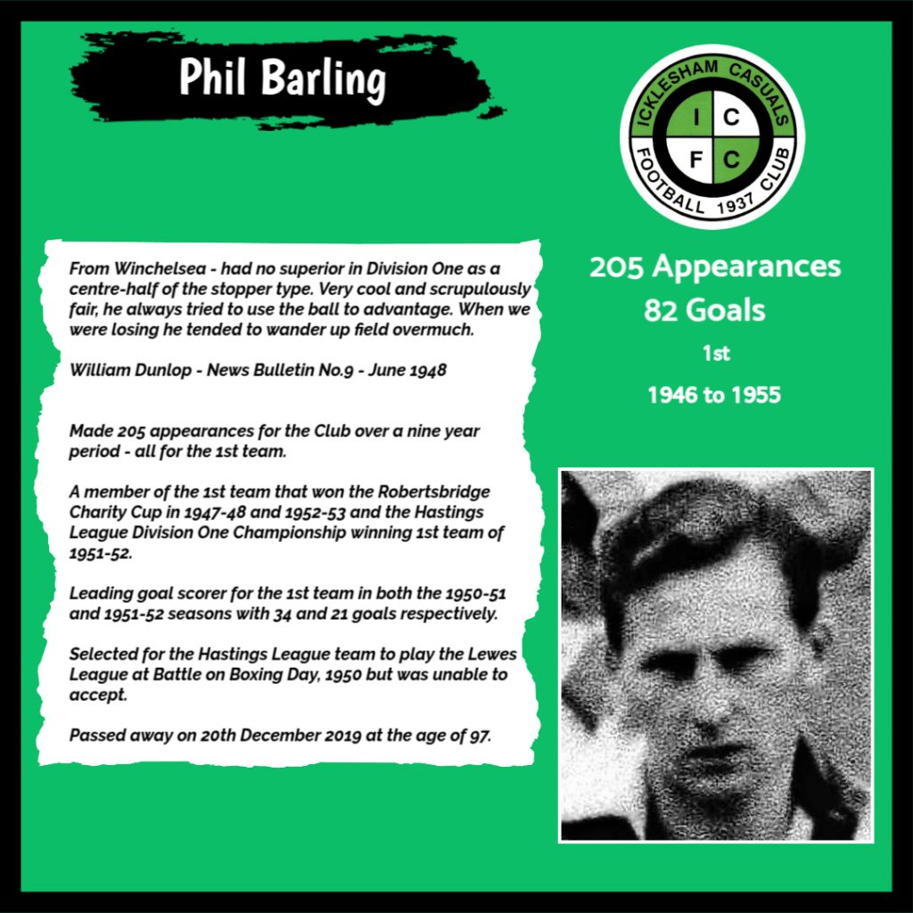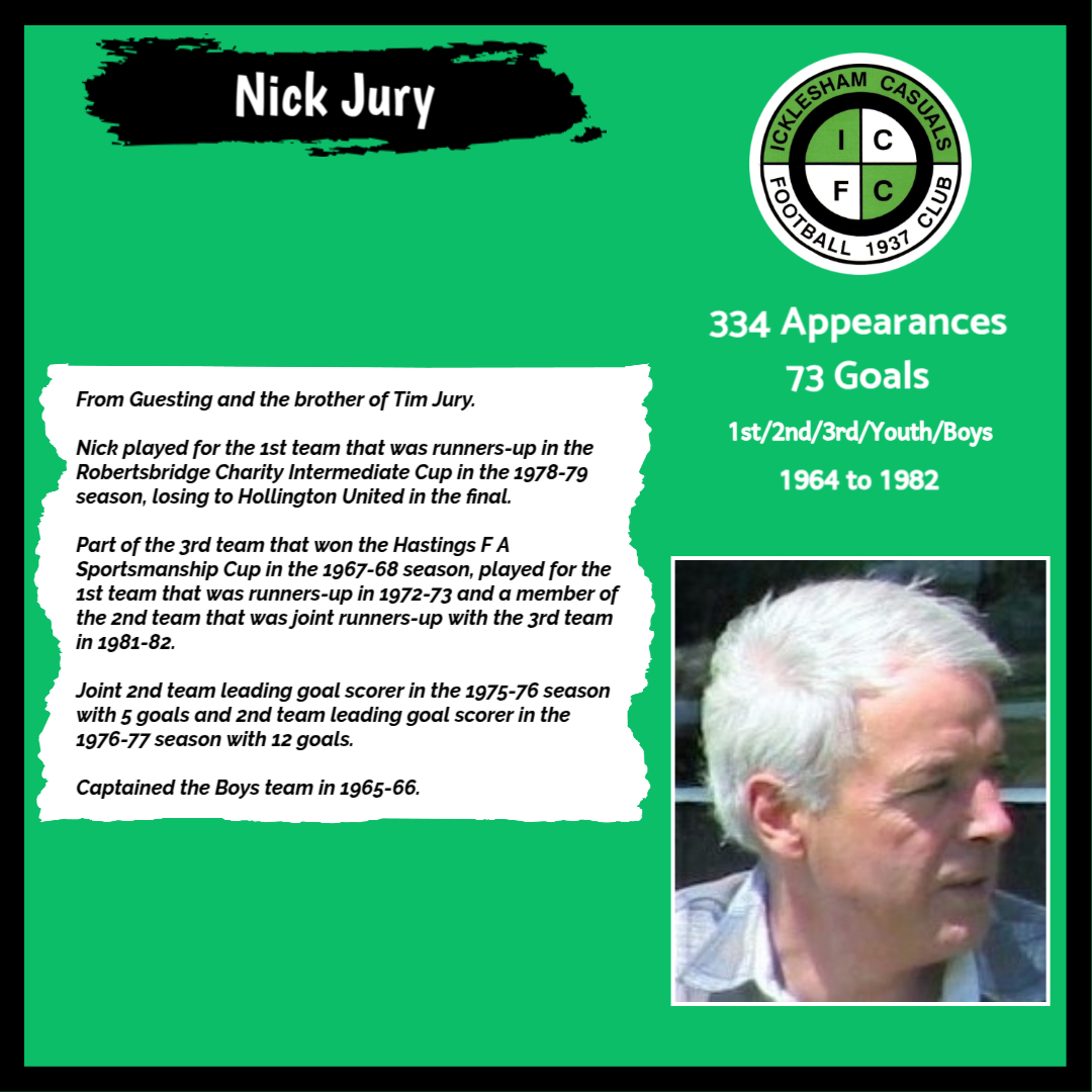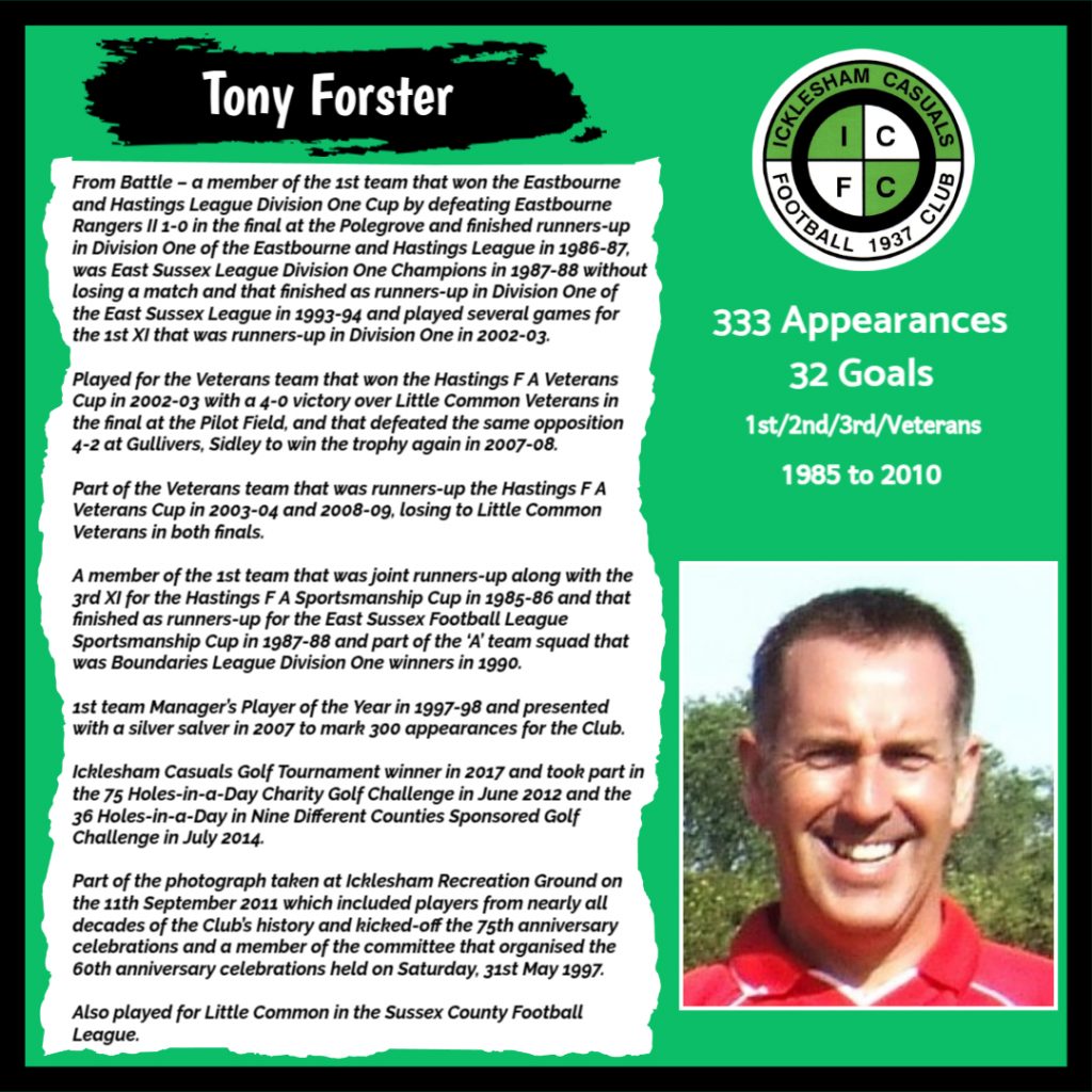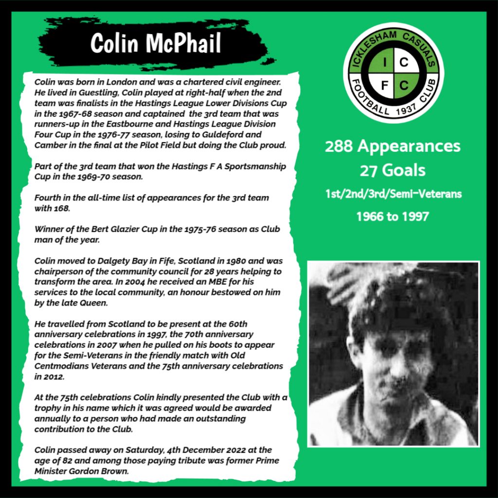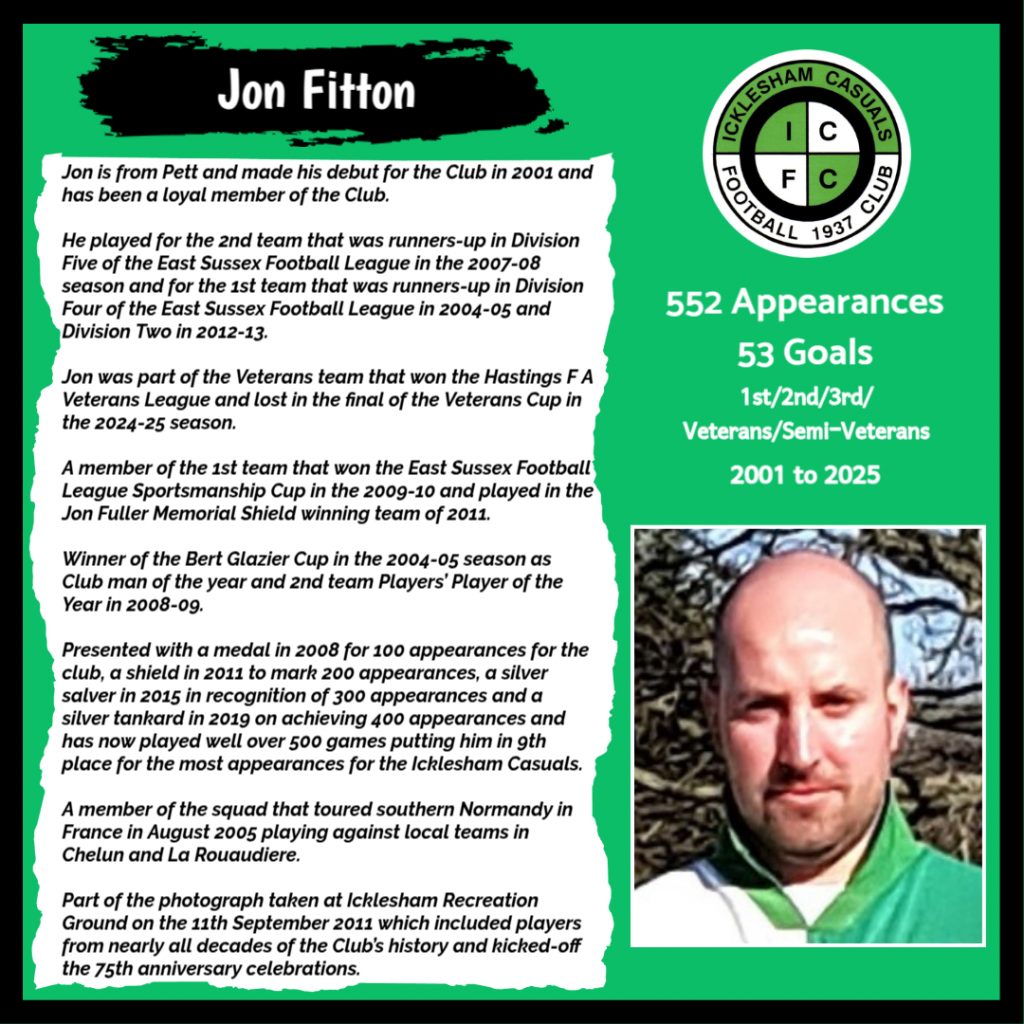 All have made a significant contribution to Icklesham Casuals Football Club both on and off the field, are among the leading appearance makers or goal scorers, one of the excellent captains of the various teams or were part of the Sussex Junior Cup winning side – the greatest achievement in the Club’s history to date.