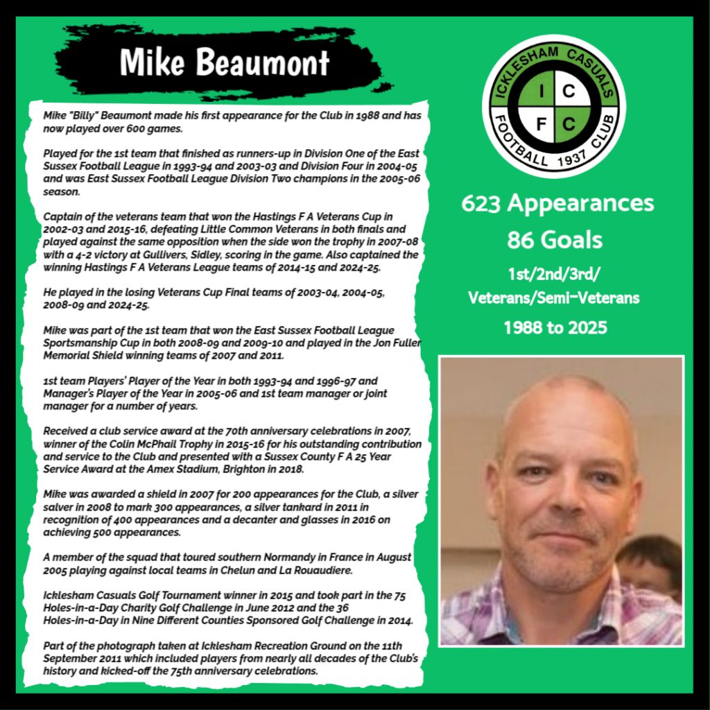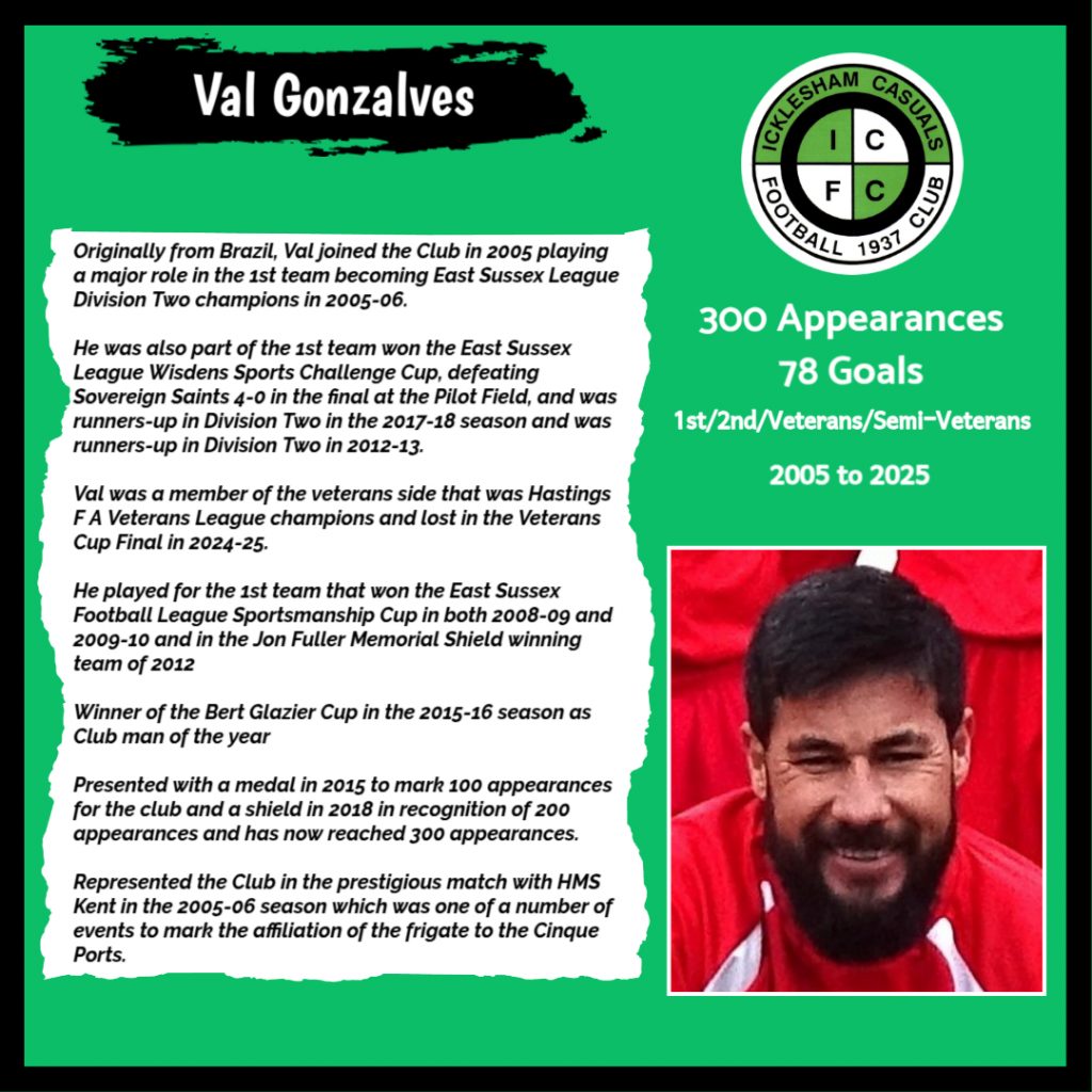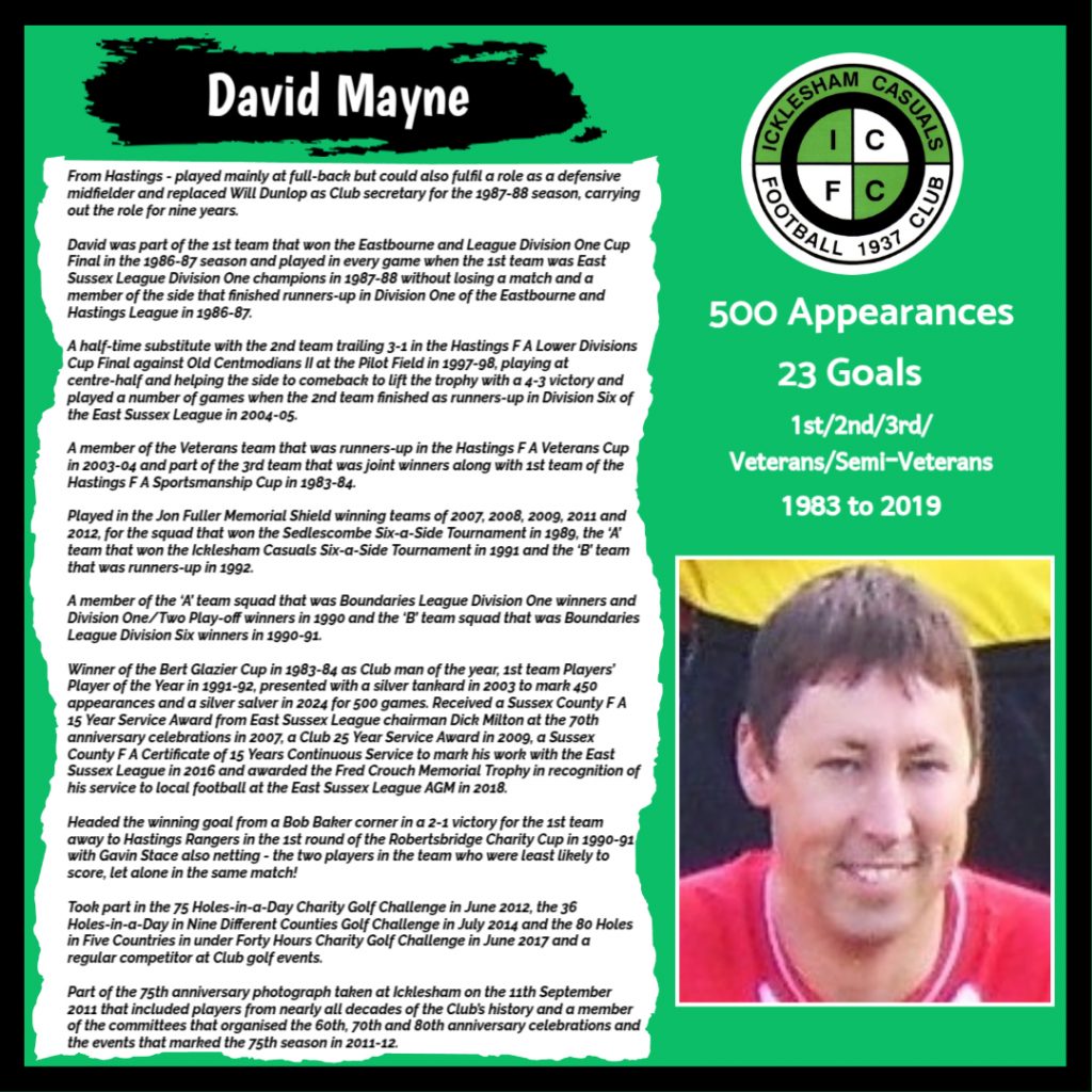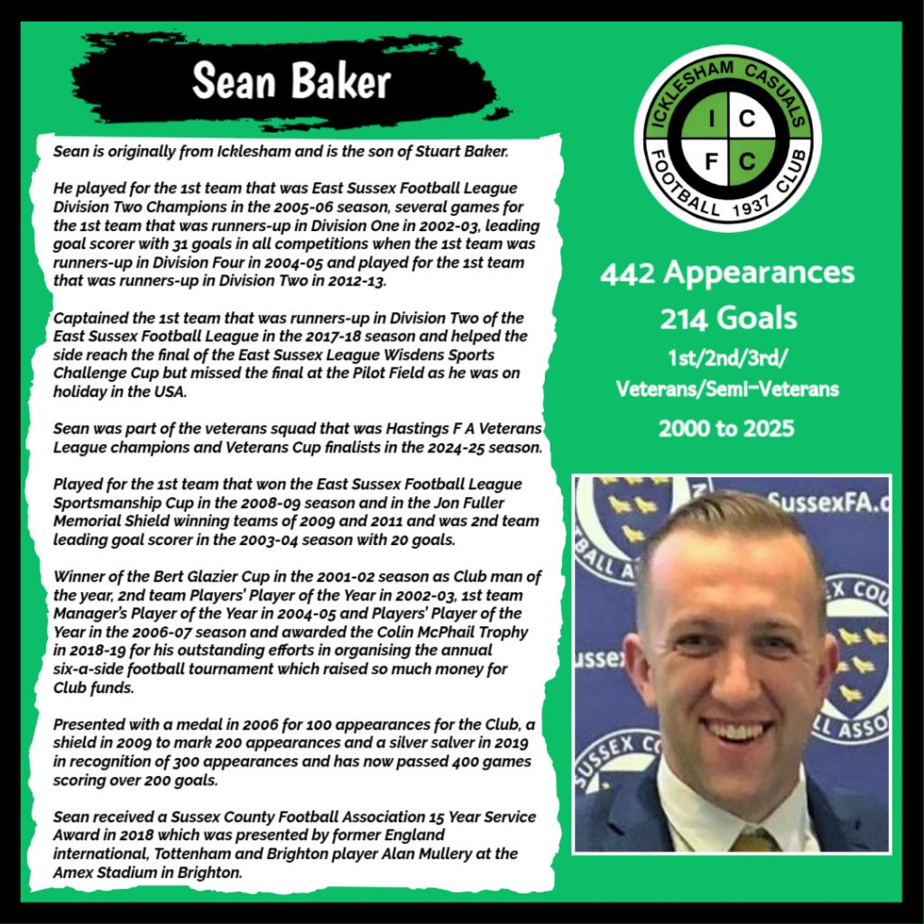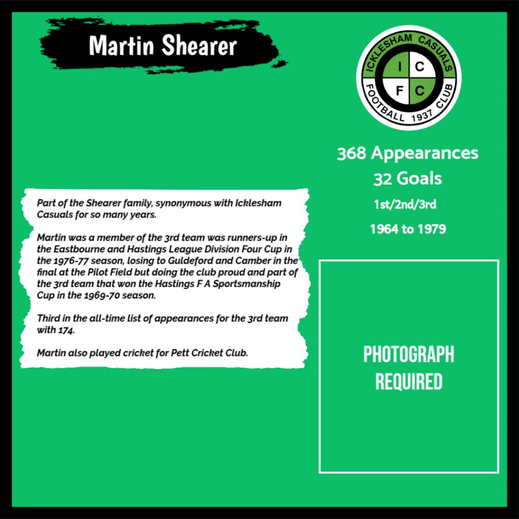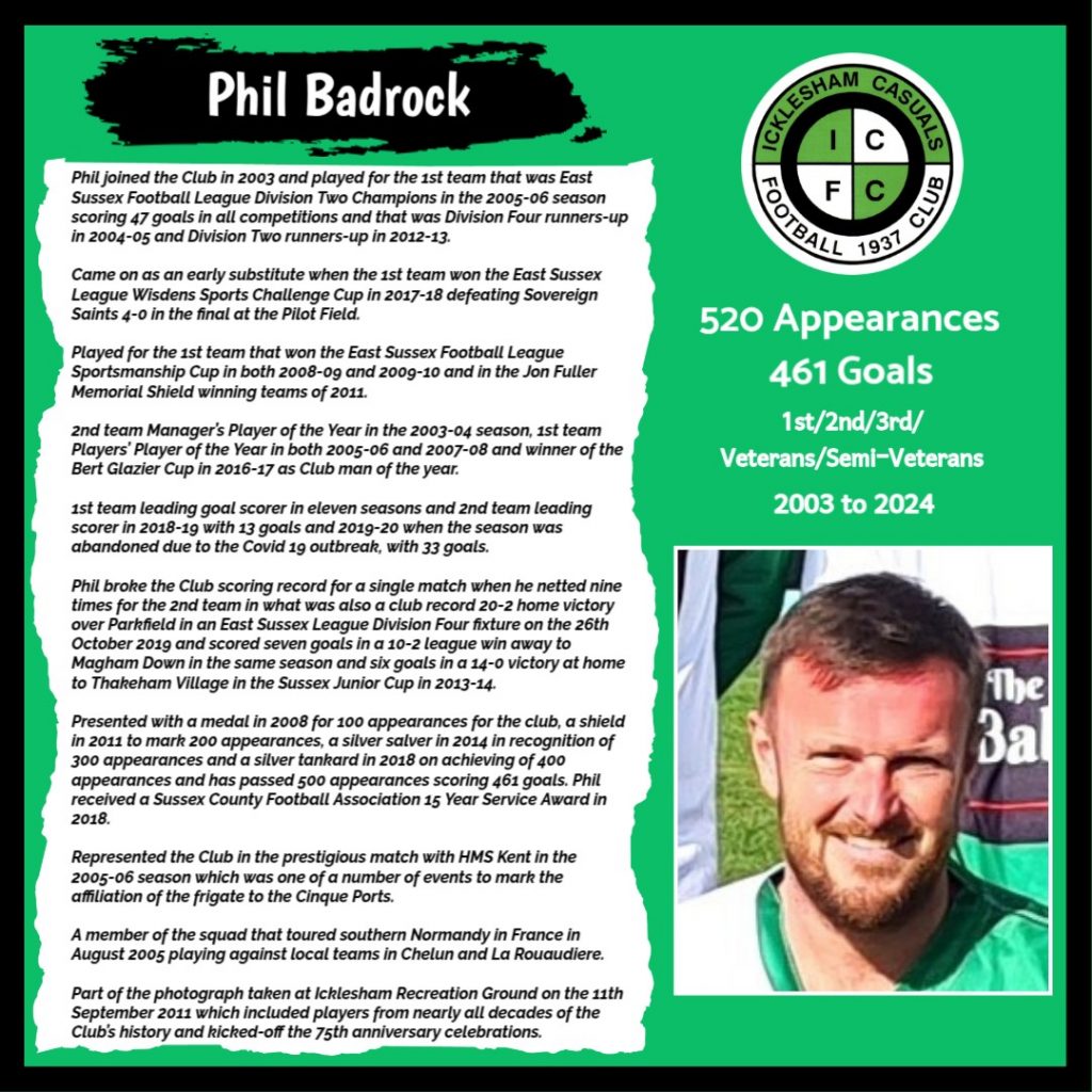 All have made a significant contribution to Icklesham Casuals Football Club both on and off the field, are among the leading appearance makers or goal scorers, one of the excellent captains of the various teams or were part of the Sussex Junior Cup winning side – the greatest achievement in the Club’s history to date.