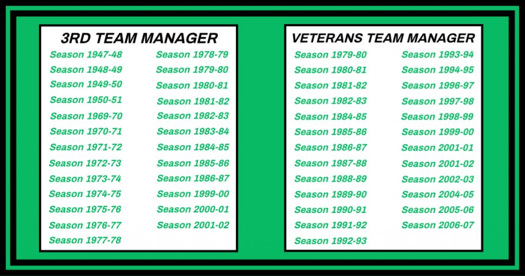 | BAKER T | 1980-81 to 1982-83 | 10 | 3rd/Boys | BOWEN S | 1965-66 | 1 | Boys | |