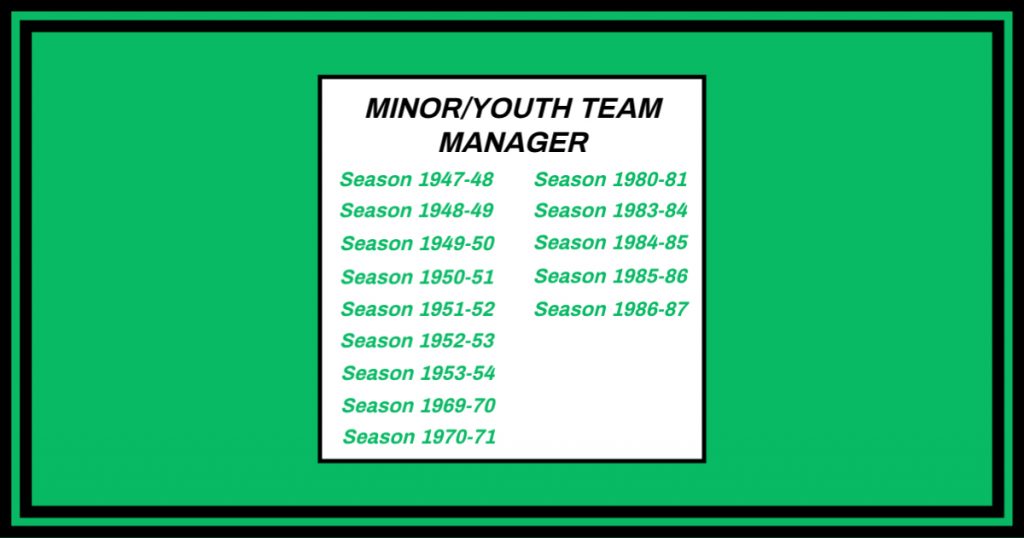| THORPE W | 1967 to 1968 | 2 | 3rd | TURNER J | 1967-68 to 1971 | 11 | 3rd/Youth/Boys | |