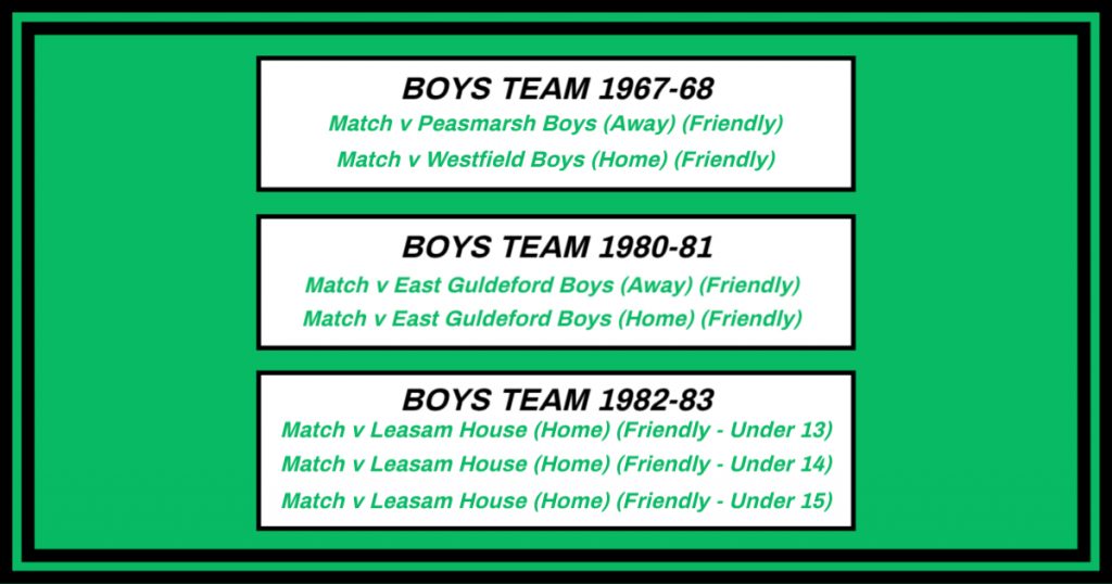 | SHEARER K | 1967-68 to 1970 | 7 | Youth/Boys | SOWDEN A | 1955 to 1956 | 6 | 1st/2nd | |