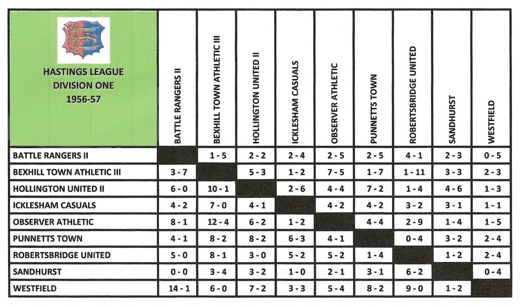 | 12/1/1957 | Whatlington | Home | League | 3 – 2 | Dick Crisford 2, Harold Stonham |