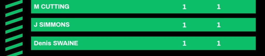 | 13/4/1957 | Mountfield | Home | League | 4 – 2 | John Dunk 2, Michael Hobbs, Harold Stonham |