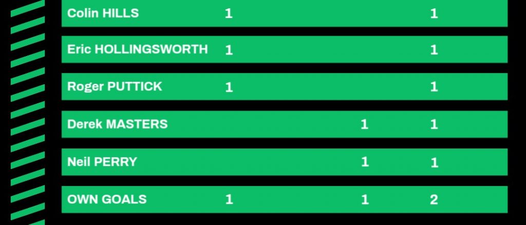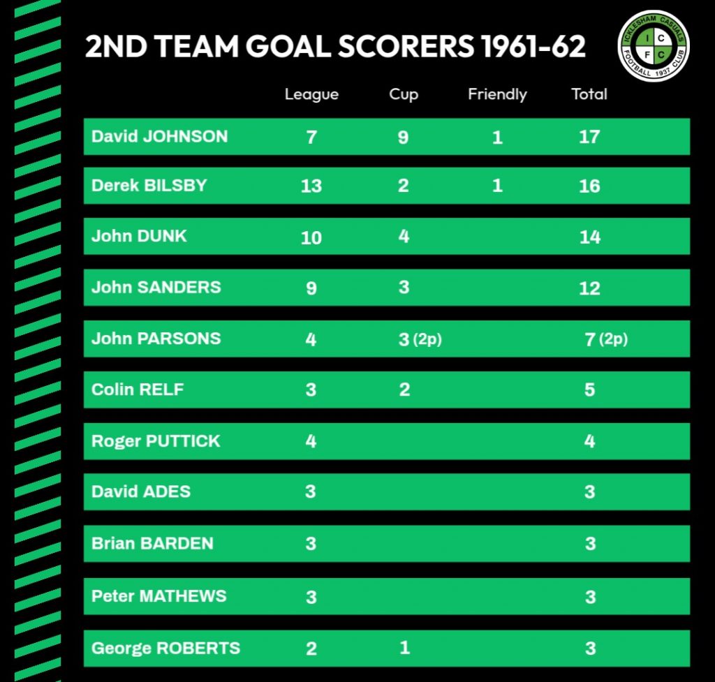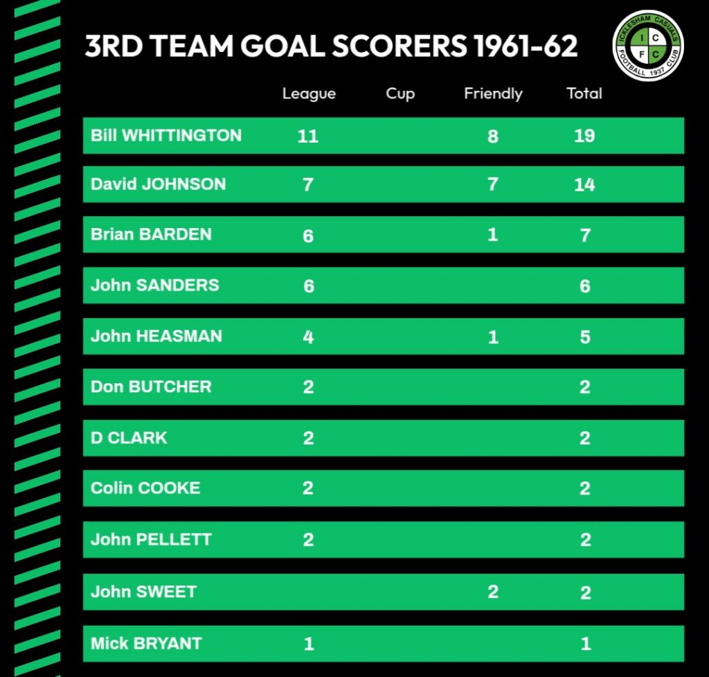 18/11/1961Old Hastonians ‘AAwayLeague5 – 3Derek Bilsby 3, David Johnson 2