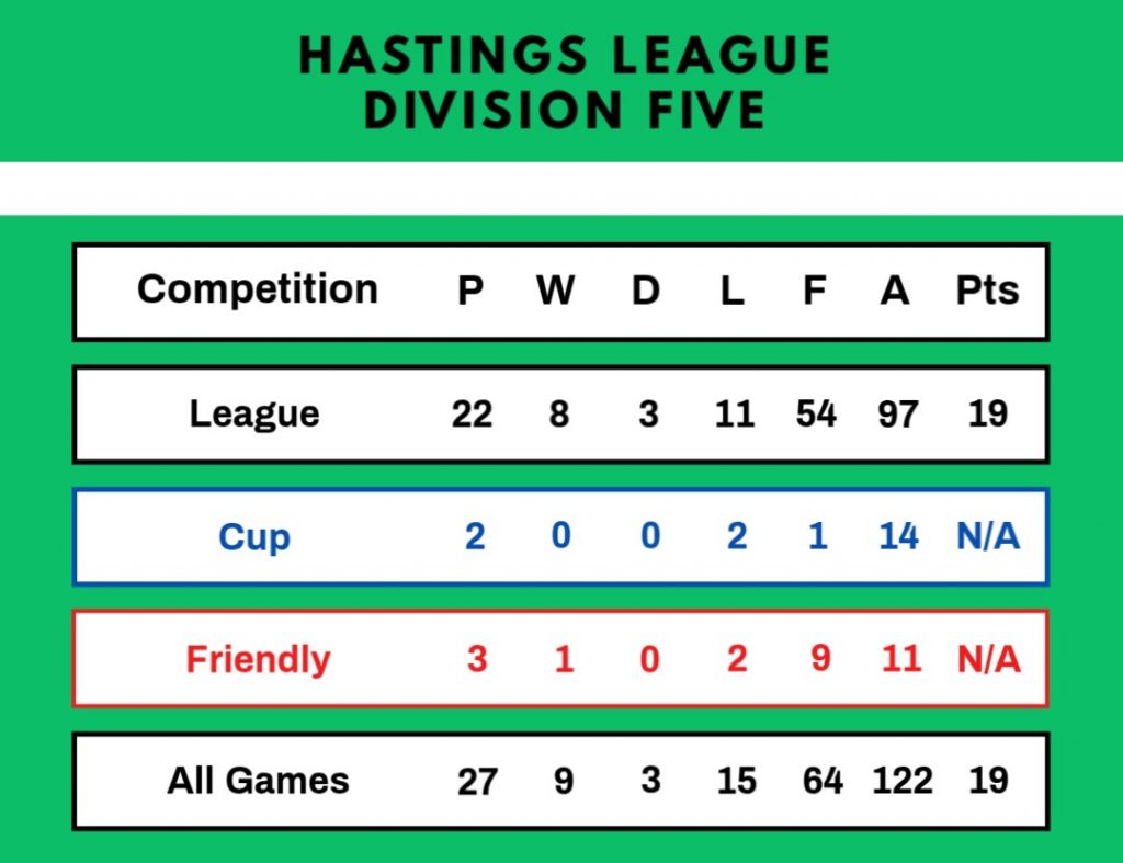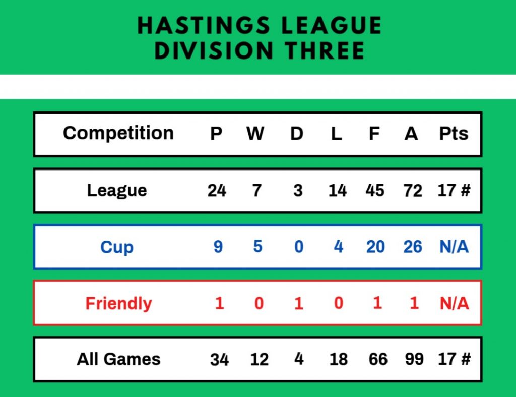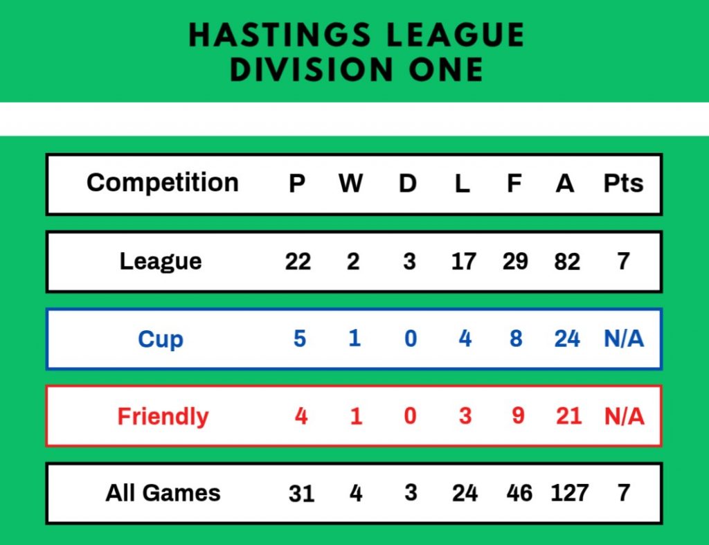 24/4/1967CollegeNeutral<Hastings League Lower Divisions Cup Final0 – 3