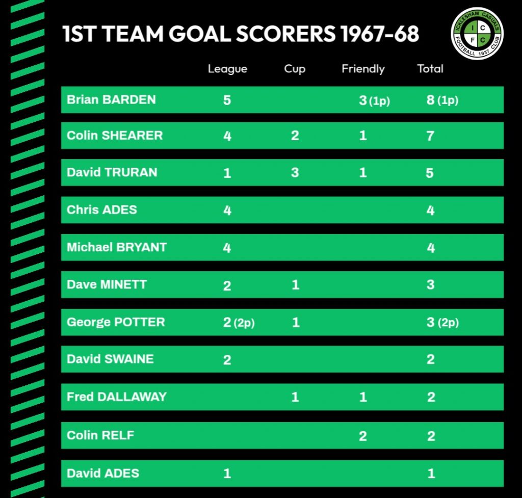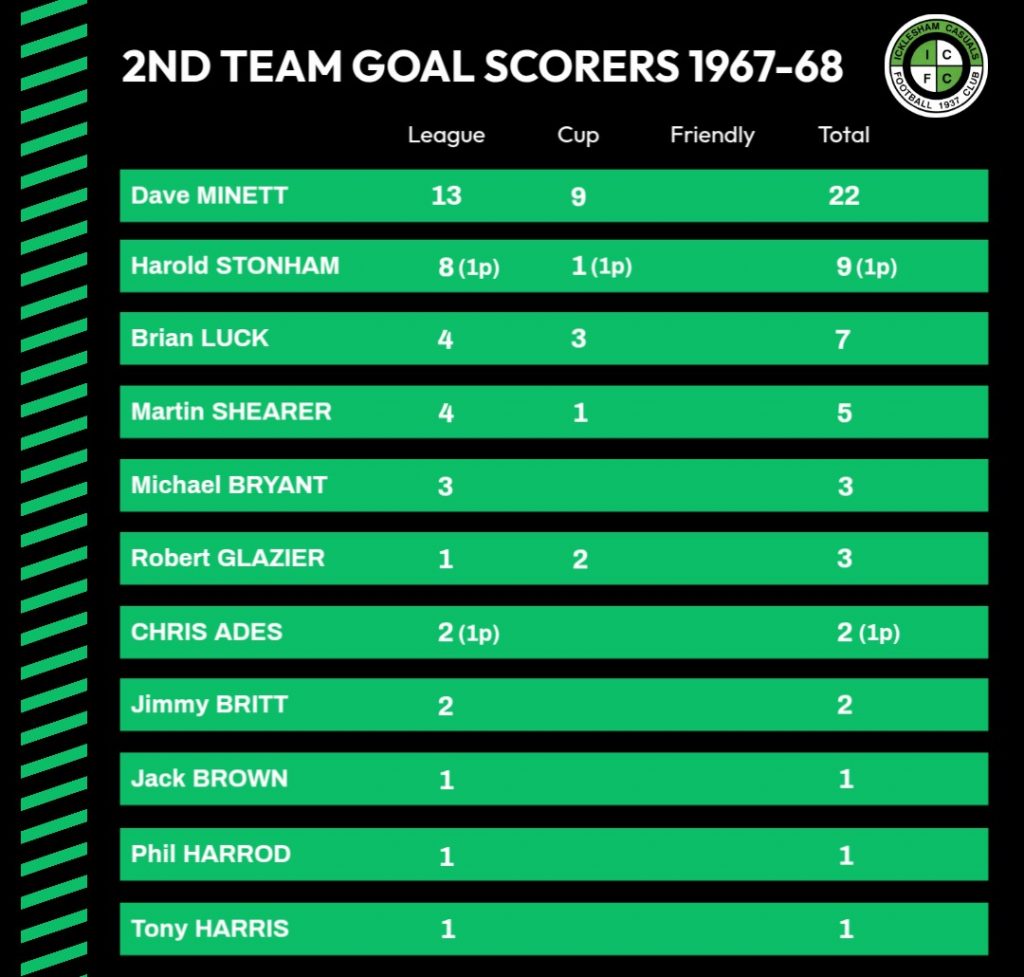 30/12/1967Punnetts Town IIAwayLeague5 – 1Peter Thorpe 2, Keith Holdstock, Jimmy Britt, Bert Glazier