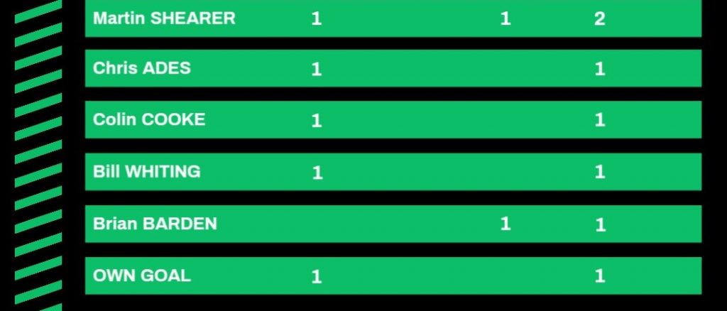 23/3/1968Fracmo Sports IIAwayLeague9 – 2Colin Shearer 3, Chris Williams 2, John Crisford 2, Jimmy Britt, Fred Dallaway