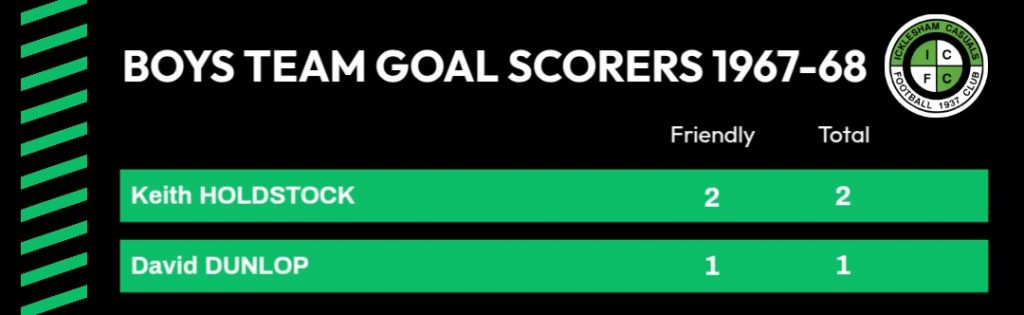 28/10/1967Junior Club TacklewayHomeLeague1 – 2Harold Stonham