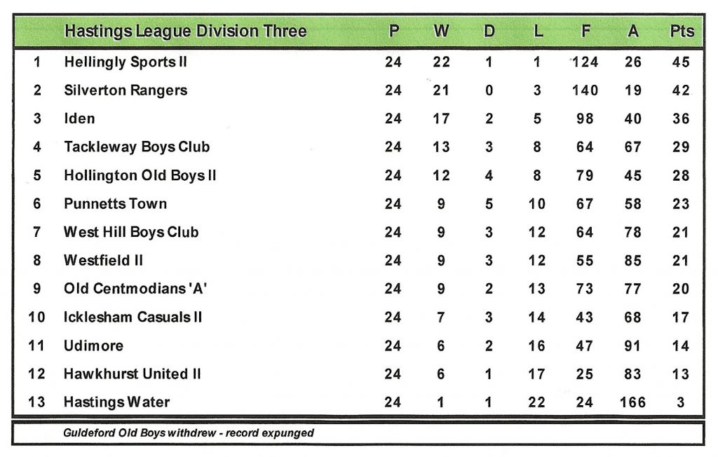 16/3/1968Guldeford Old Boys IIHomeLeague0 – 3