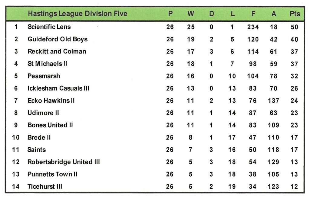 Colin Cooke again marked out the Icklesham pitch and Jack Brown looked after the footballs. Following a site meeting, agreement was reached with Icklesham Parish Council on ground maintenance. The Club continued to use Fairlight Recreation Ground and enjoyed the practical help of the Fairlight Parish Council.