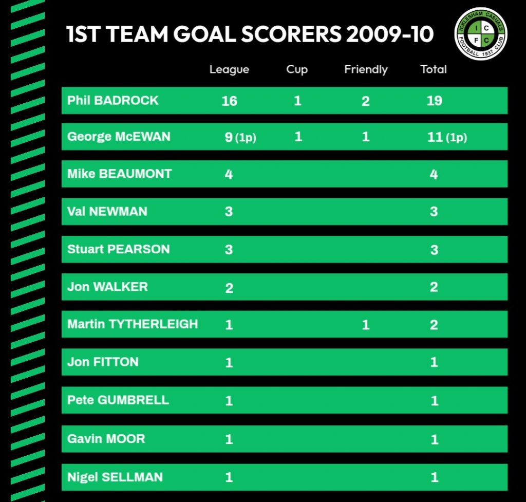 | 6/3/2010 | Mountfield United | Away> | League | 1 – 5 | Phil Badrock |