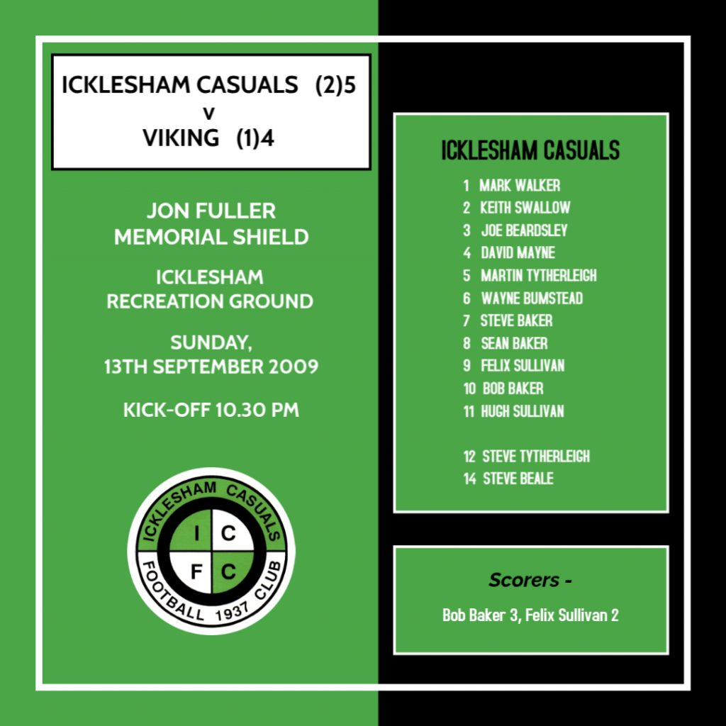 The fourth annual match between Icklesham Casuals and Viking in memory of former player Jon Fuller took place at the Recreation Ground on Sunday, 13th September. It was good to see many old friends again with the game marking the first appearance of both Hugh Sullivan and Keith Swallow.
