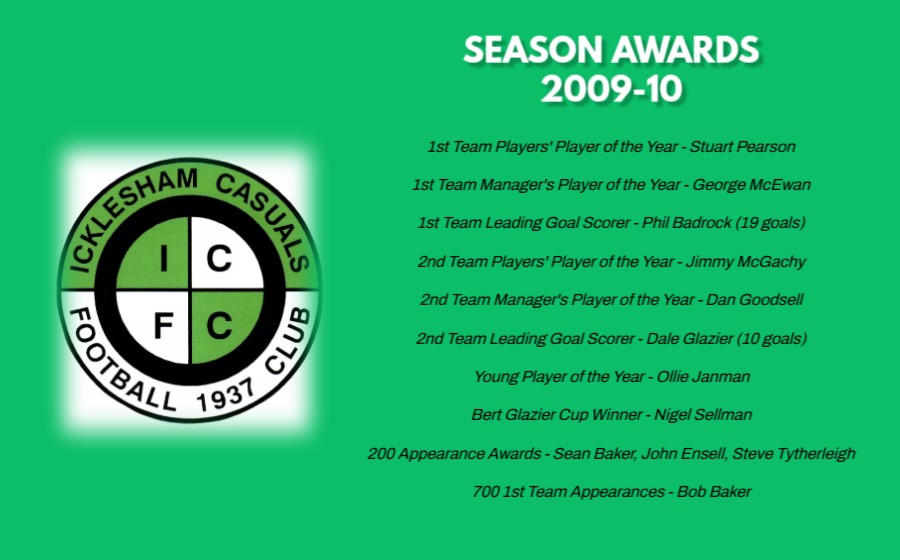It is perhaps in seasons like 2009/10 when you fully appreciate the hard work that is put in by the Officers and Committee of the Club. The Club owed its thanks in particular to Martin Tytherleigh, Mike Beaumont, Michael Hambridge and Keith Swallow, whose efforts in keeping the teams going in such difficult circumstances cannot be underestimated, to Keith, in whom the Club had one of the best, if not the best, secretaries in the League and to Bob Baker for his tireless work as chairman. Thanks were also to everyone else who contributed during a hard year and to all those who came along to support the teams.