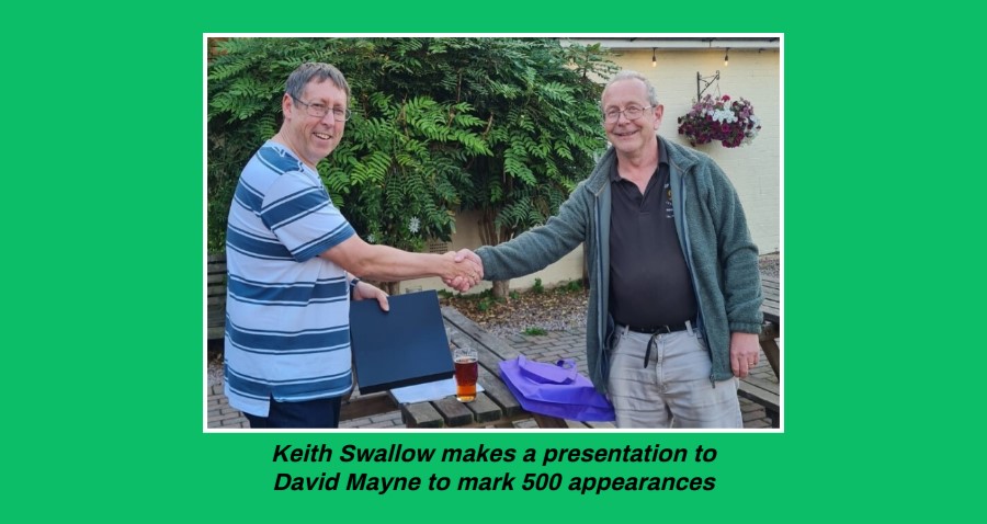 The Annual General Meeting was held at the Queen’s Head, Icklesham on Tuesday, 2nd July 2024 when David Mayne was presented with a silver salver to mark 500 appearances for the Club.