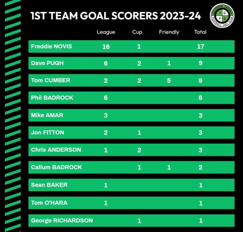 | 30/3/2024 | The Junior Club Tackleway II | Away* | League | 3 – 7 | Freddie Novis 2, Tom Cumber |