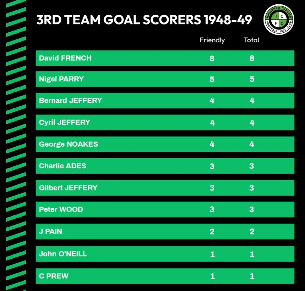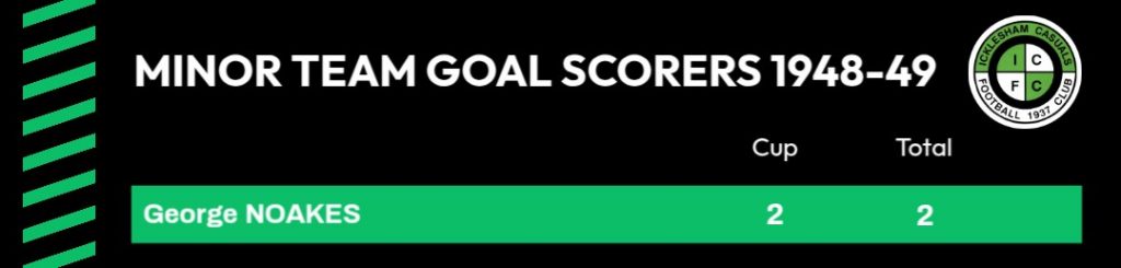 22/1/1949Catsfield IIHomeFriendly10 – 0Bernard Jeffery 3, Cyril Jeffery 2, George Noakes 2, J Pain 2, Peter Wood