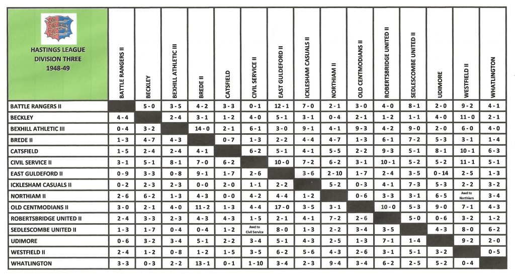 9/10/1948Sedlescombe United IIAwayLeague3 – 1Cyril Jeffery 2, Cyril Rich
