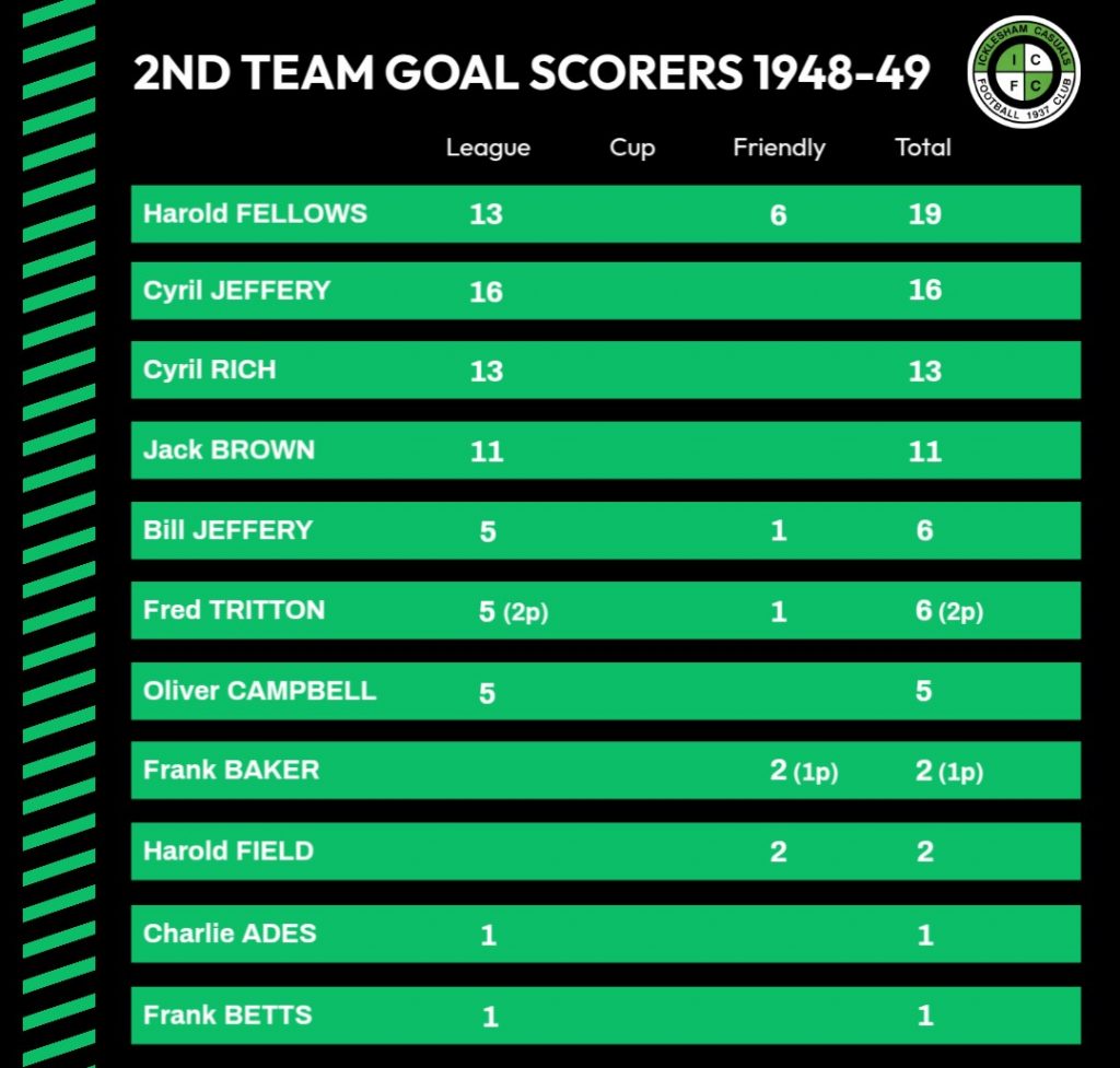 5/3/1949Robertsbridge United IIHomeLeague4 – 1Cyril Jeffery 2, Harry Fellows, Cyril Rich