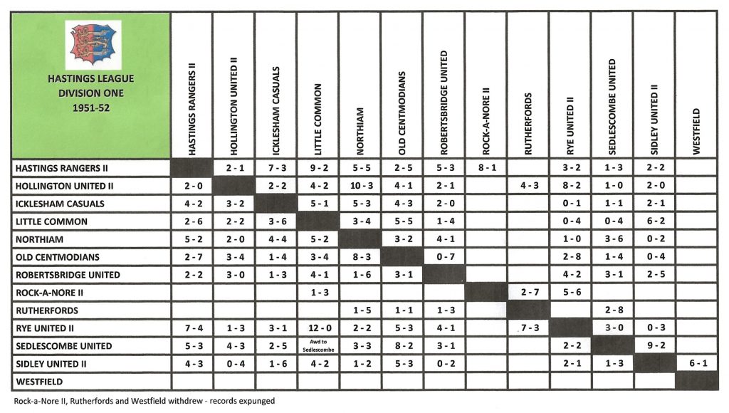 | 19/1/1952 | East Guldeford | Home | Hastings League Division Three Cup 1st Round | 7 – 0 | Bill Betts 3, Cyril Rich 2, T Duffield, Oliver Campbell |