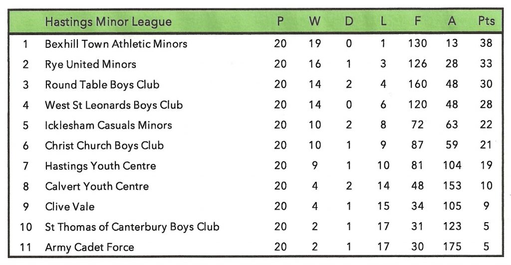 | 15/3/1952 | Bexhill Town Athletic Minors | Home | League | 0 – 7 | |