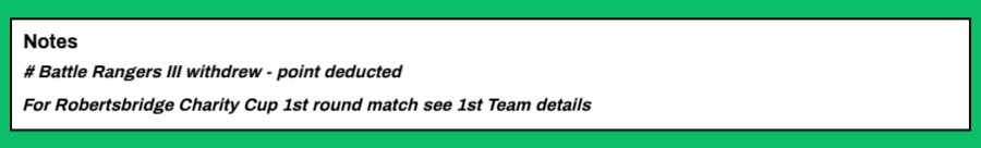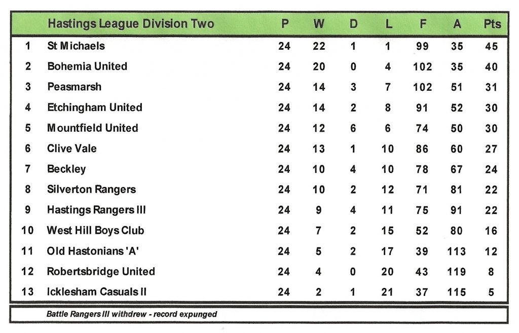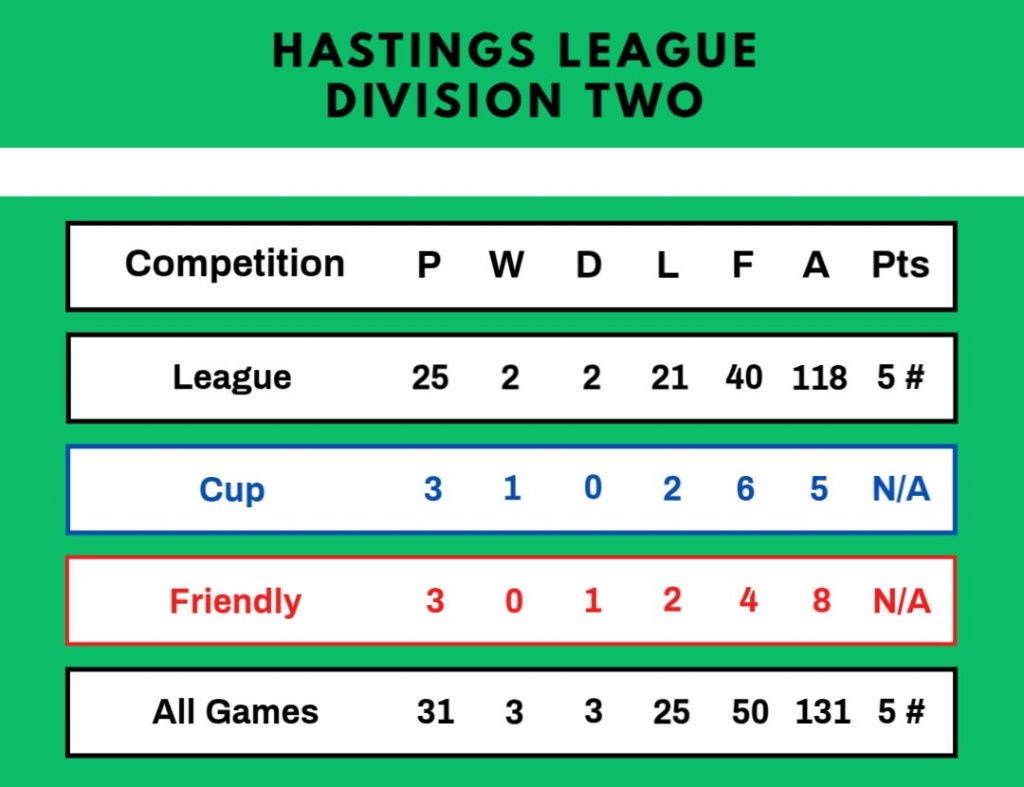 Etchingham United II | Away | League | 4 – 3 | David Johnson 2, J Amsdon, Brian Luck |
