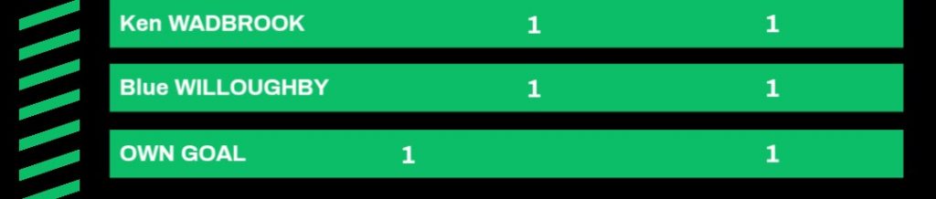 | 12/12/2020 | Sovereign Saints II | Away | League | 4 – 2 | Sam Norman 2, Val Newman, Joe Fraser |