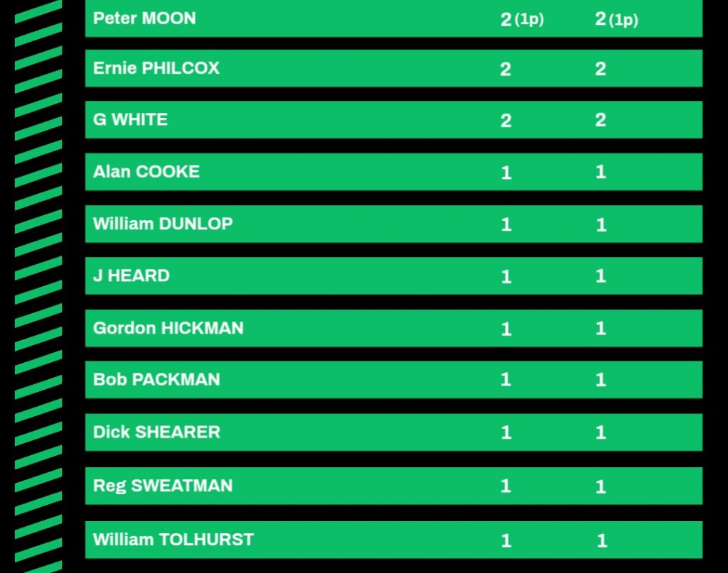 30/11/1940 | ‘A’ Company 4th Royal Sussex Regiment (Pett) | Home | Friendly | 4 – 3 | Ernie Philcox, Peter Moon, Cyril Barden, W Brooks |