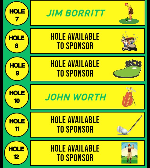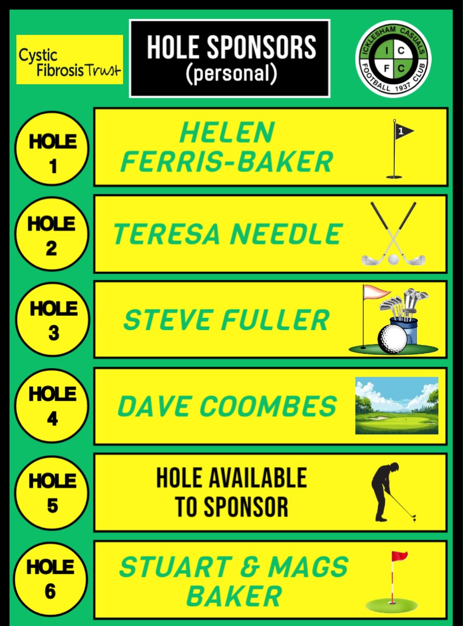 • Sponsor a Hole – Business sponsorship a minimum of £50 per hole and Personal sponsorship £20 per hole